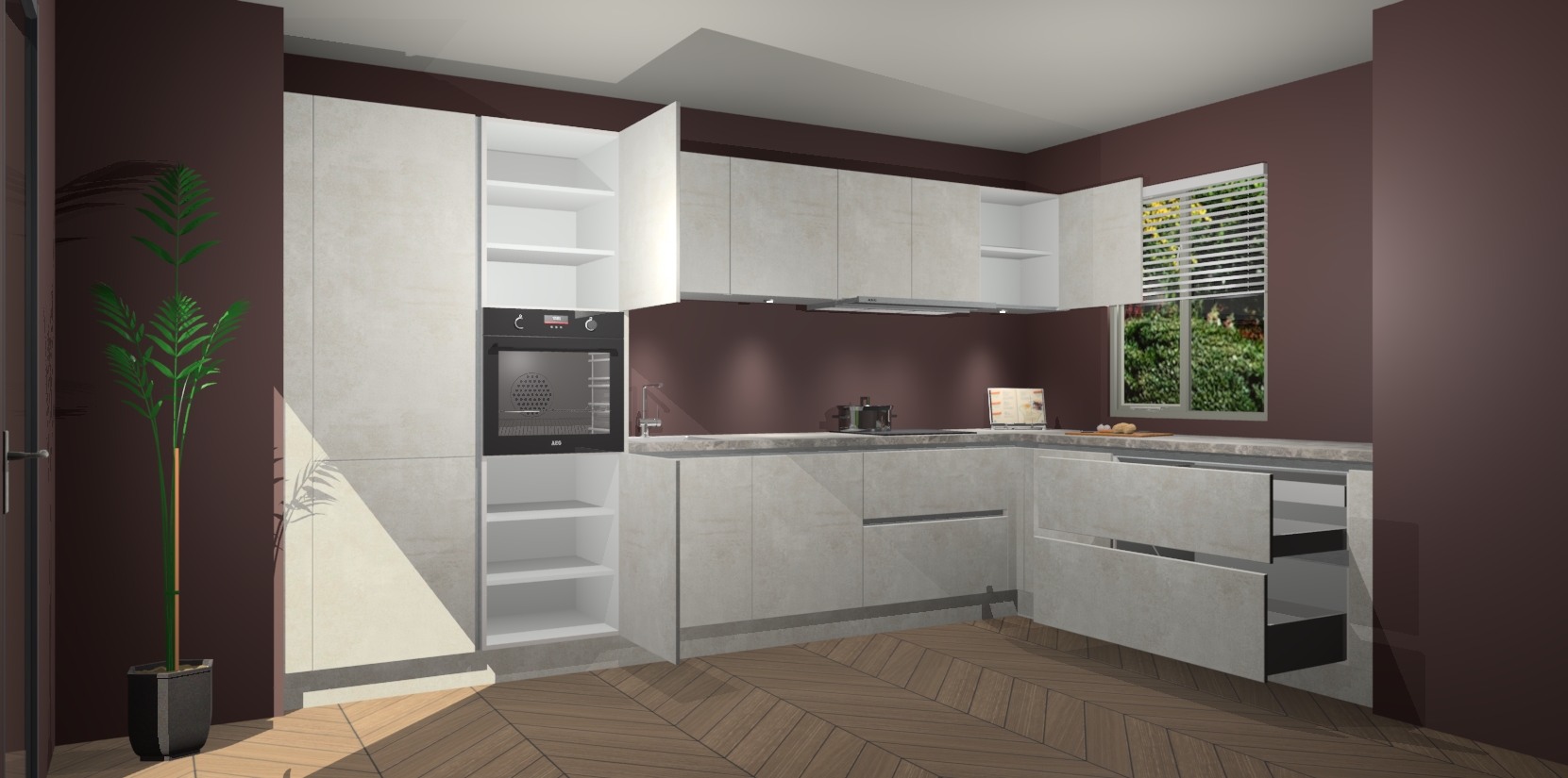 Verwelkom de natuurlijke warmte van de Beton Opal greeploze keuken Petten in uw huis. Deze prachtige hoekkeuken met zijn moderne design en warme houten look geeft u meer dan genoeg opbergruimte om uw comfortabel te voelen in uw keuken. Geniet van soft-close deuren die al uw gasten het gevoel zullen geven dat ze zich in een luxueuze ruimte bevinden.