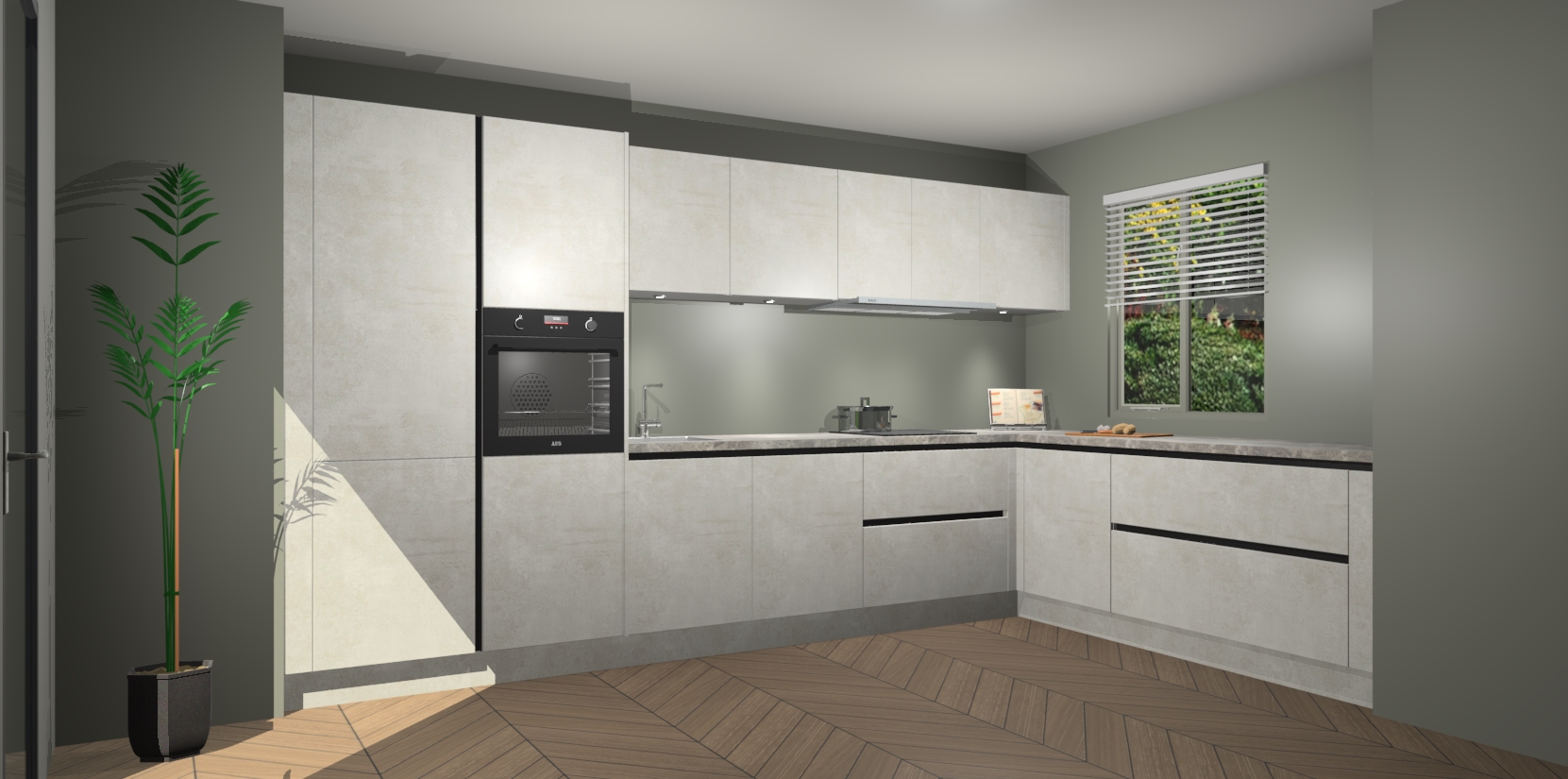 Verwelkom de natuurlijke warmte van de Beton Opal greeploze keuken Petten in uw huis. Deze prachtige hoekkeuken met zijn moderne design en warme houten look geeft u meer dan genoeg opbergruimte om uw comfortabel te voelen in uw keuken. Geniet van soft-close deuren die al uw gasten het gevoel zullen geven dat ze zich in een luxueuze ruimte bevinden.