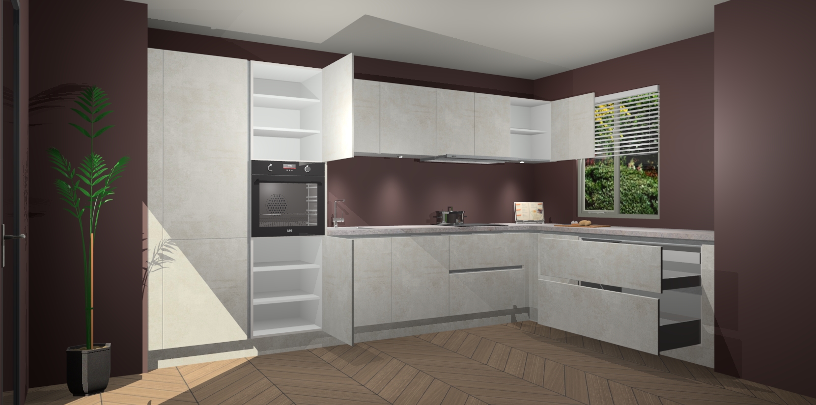 Verwelkom de natuurlijke warmte van de Beton Opal greeploze keuken Petten in uw huis. Deze prachtige hoekkeuken met zijn moderne design en warme houten look geeft u meer dan genoeg opbergruimte om uw comfortabel te voelen in uw keuken. Geniet van soft-close deuren die al uw gasten het gevoel zullen geven dat ze zich in een luxueuze ruimte bevinden.