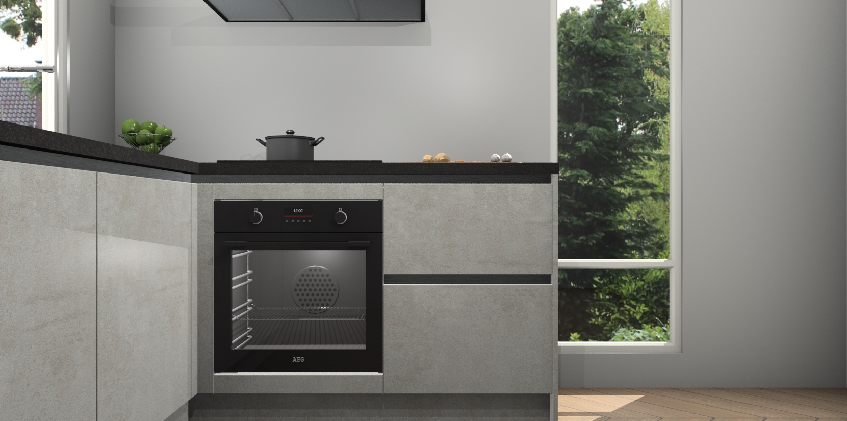 De Beton Opal greeploze keuken Phuket heeft alles wat u maar kunt wensen. Niet alleen zijn er softclose deuren, maar ook 5 ingebouwde apparaten: een oven, inductiekookplaat, afzuigkap, vaatwasser en koelkast - waarbij u later gemakkelijk naar het AEG merk, van inductiekookplaat naar kookplaat met geïntegreerde afzuiging of van oven naar combimagnetron kunt upgraden. Dat alles tegen een vast laag tarief! Bovendien geeft de Beton Opal greeploze keuken Phuket supersnelle levering van 7 weken. Echt iets voor u als u er niet op wilt wachten om het resultaat te zien in eigen keuken!