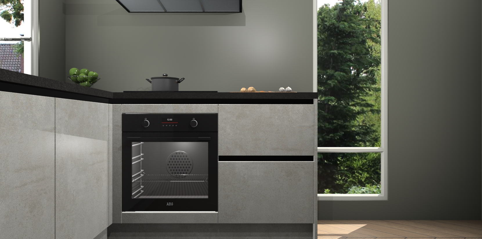 De Beton Opal greeploze keuken Phuket heeft alles wat u maar kunt wensen. Niet alleen zijn er softclose deuren, maar ook 5 ingebouwde apparaten: een oven, inductiekookplaat, afzuigkap, vaatwasser en koelkast - waarbij u later gemakkelijk naar het AEG merk, van inductiekookplaat naar kookplaat met geïntegreerde afzuiging of van oven naar combimagnetron kunt upgraden. Dat alles tegen een vast laag tarief! Bovendien geeft de Beton Opal greeploze keuken Phuket supersnelle levering van 7 weken. Echt iets voor u als u er niet op wilt wachten om het resultaat te zien in eigen keuken!