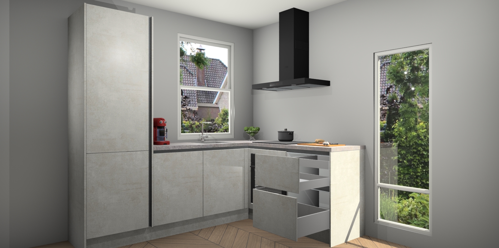 De Beton Opal greeploze keuken Phuket heeft alles wat u maar kunt wensen. Niet alleen zijn er softclose deuren, maar ook 5 ingebouwde apparaten: een oven, inductiekookplaat, afzuigkap, vaatwasser en koelkast - waarbij u later gemakkelijk naar het AEG merk, van inductiekookplaat naar kookplaat met geïntegreerde afzuiging of van oven naar combimagnetron kunt upgraden. Dat alles tegen een vast laag tarief! Bovendien geeft de Beton Opal greeploze keuken Phuket supersnelle levering van 7 weken. Echt iets voor u als u er niet op wilt wachten om het resultaat te zien in eigen keuken!