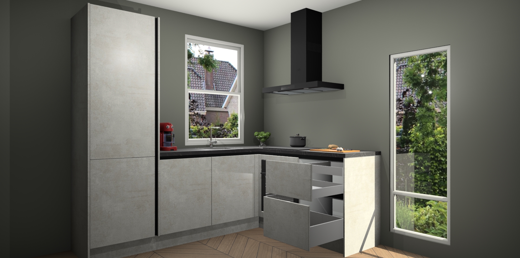 De prachtige Beton Opal greeploze keuken Phuket is de perfecte keuze als u op zoek bent naar een moderne hoekkeuken met alle luxe en comfort die u kunt verwachten! De uitstraling in het houtlook-design draagt bij aan de warme sfeer die u nu al voelt wanneer u er naar kijkt. Heeft u genoeg van ouderwetse keukens? Probeer dan direct deze moderne, mooie hoekkeukens en laat iedereen verbluft achter!