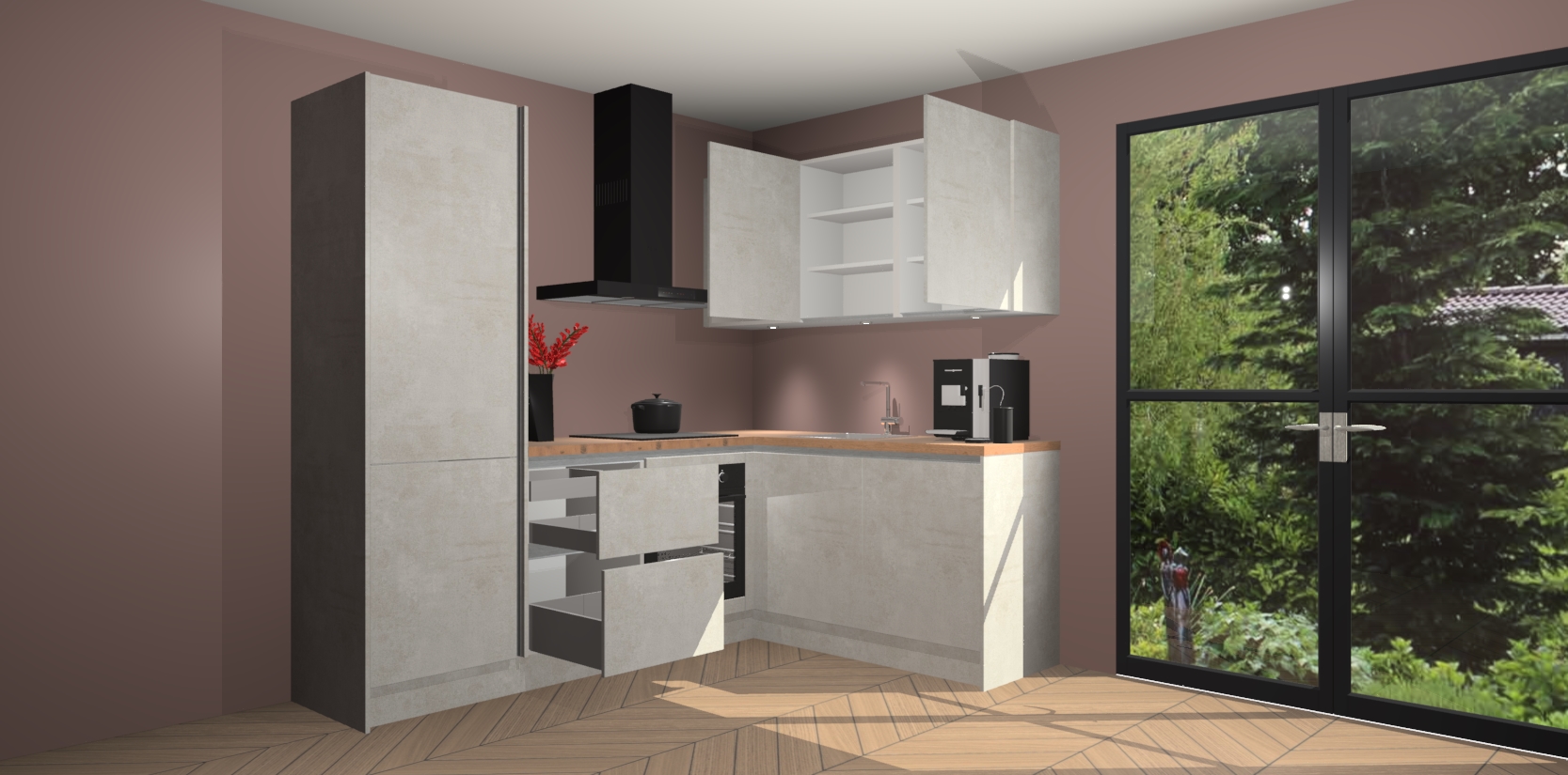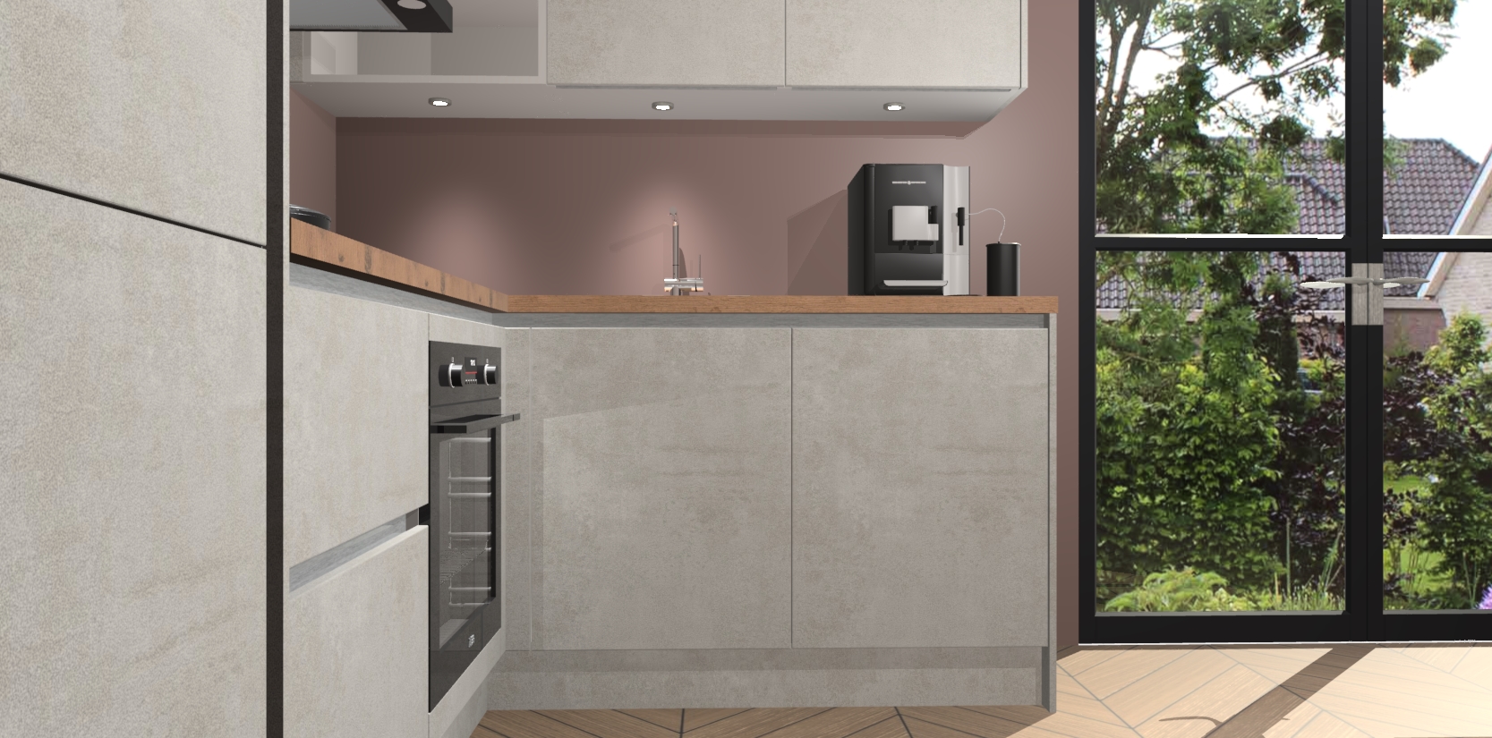 Wauw, dit is de Beton Opal greeploze keuken Pilsen! U kunt gerust zeggen dat u elegantie combineert met functionaliteit met deze keuken. Met een modern en chique ontwerp is de keuken precies wat u nodig heeft om uw ruimte te verfraaien. De binnenzijde van de kasten is in dezelfde donkere kleur als de buitenzijde voor een uniforme look, compleet met softclose-kasten die stil sluiten.