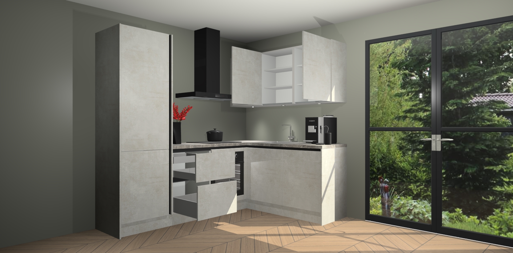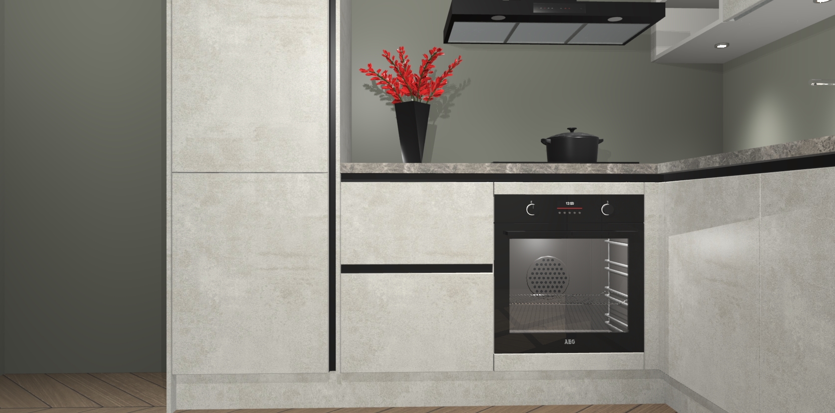 Wauw, dit is de Beton Opal greeploze keuken Pilsen! U kunt gerust zeggen dat u elegantie combineert met functionaliteit met deze keuken. Met een modern en chique ontwerp is de keuken precies wat u nodig heeft om uw ruimte te verfraaien. De binnenzijde van de kasten is in dezelfde donkere kleur als de buitenzijde voor een uniforme look, compleet met softclose-kasten die stil sluiten.