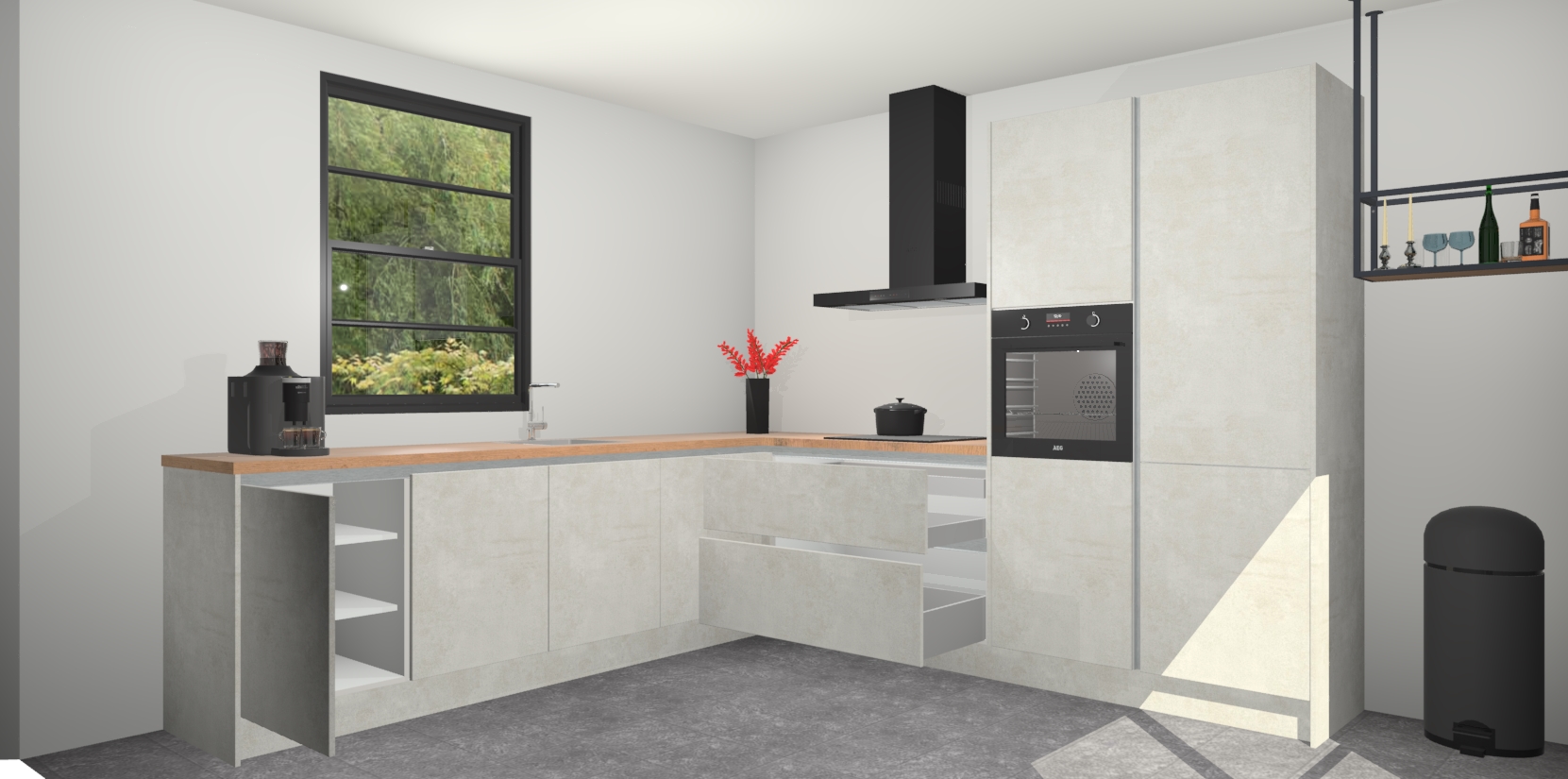 De Beton Opal greeploze keuken Porto heeft 5 ingebouwde apparaten - een oven, inductiekookplaat, afzuigkap, vaatwasser en koelkast - waarmee u in een handomdraai heerlijke gerechten bereidt. Soft-close deuren zorgen voor nog meer functionaliteit en gemak. En dit alles voor een onverslaanbaar vaste prijs. En als u nu bestelt, duurt de levering maar 7 weken! Wat nog ongelooflijker is, is dat onze kasten voor gemonteerd worden geleverd.