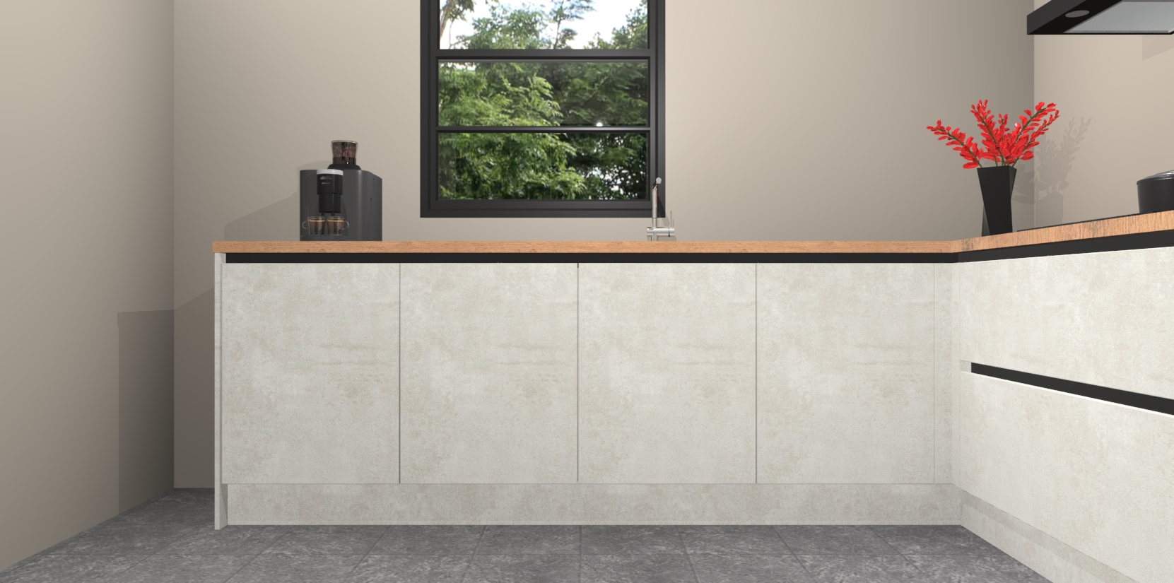 Nederlandse keukens worden niet comfortabeler dan de Beton Opal greeploze keuken Porto! Deze prachtige en unieke keuken straalt sfeer uit en biedt tegelijkertijd praktische opbergoplossingen. Of u nu een meester-kok bent of een culinaire amateur, dit is de ideale keuze voor u! Deze keuken is ideaal voor grote gezinnen, huizen met veel gasten - of iedereen die graag thuis is - en heeft genoeg functies om uw gezin te voeden.