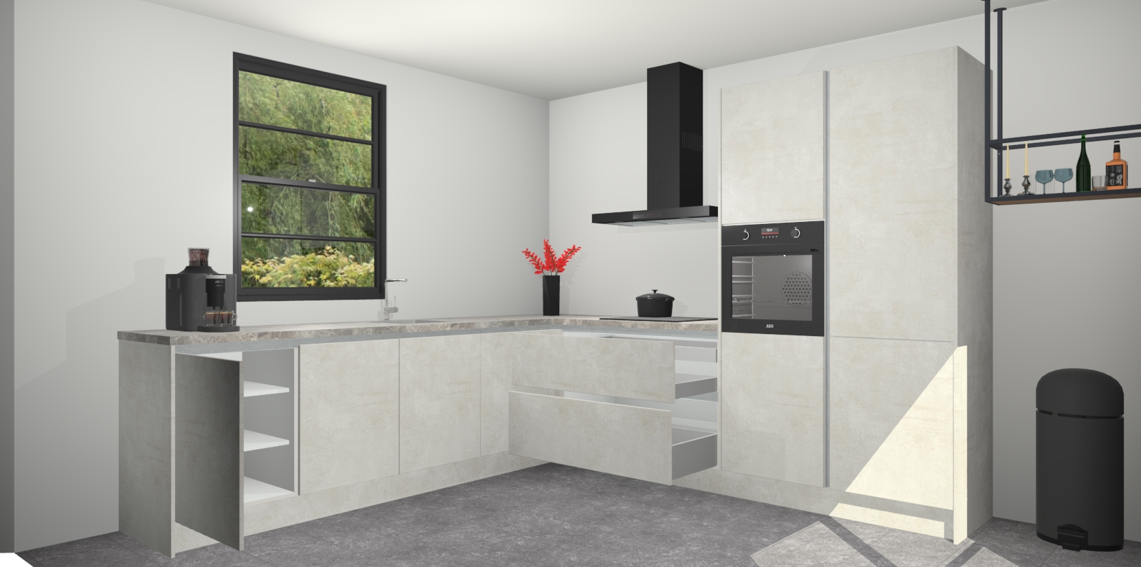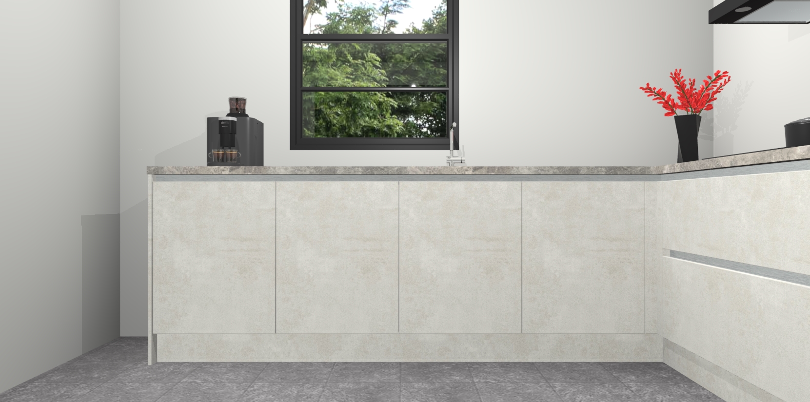 De Beton Opal greeploze keuken Porto heeft 5 ingebouwde apparaten - een oven, inductiekookplaat, afzuigkap, vaatwasser en koelkast - waarmee u in een handomdraai heerlijke gerechten bereidt. Soft-close deuren zorgen voor nog meer functionaliteit en gemak. En dit alles voor een onverslaanbaar vaste prijs. En als u nu bestelt, duurt de levering maar 7 weken! Wat nog ongelooflijker is, is dat onze kasten voor gemonteerd worden geleverd.