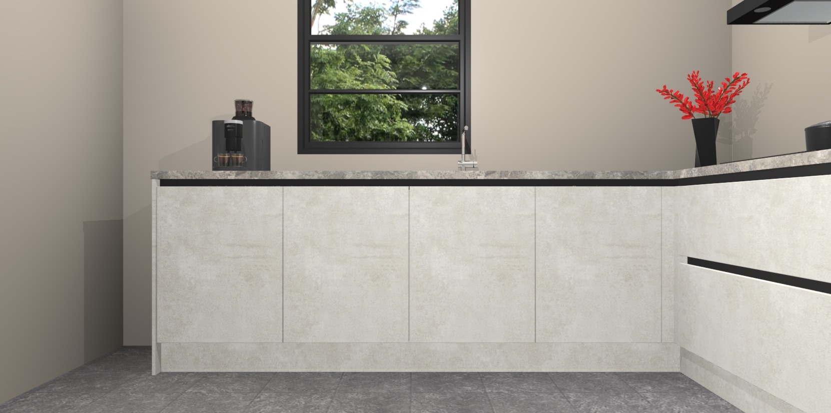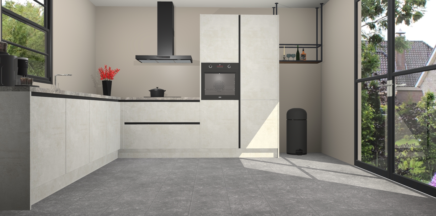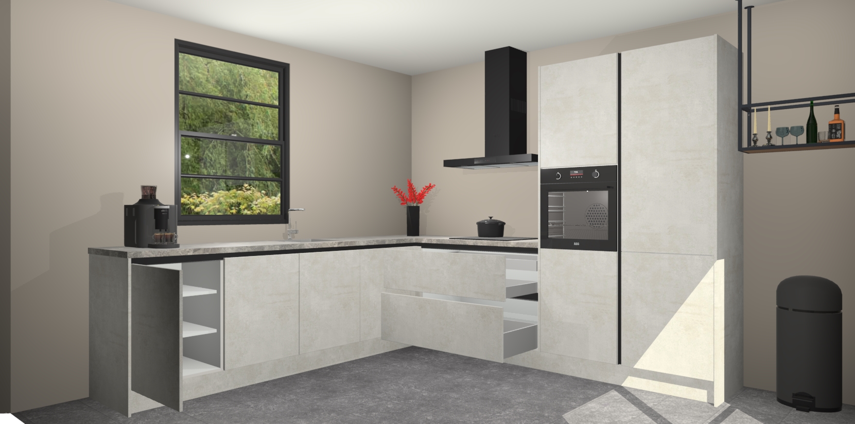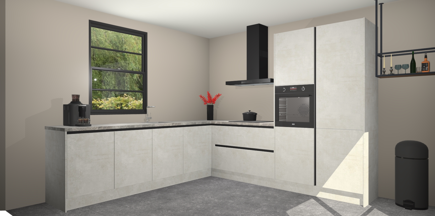 Nederlandse keukens worden niet comfortabeler dan de Beton Opal greeploze  keuken Porto! Deze prachtige en unieke keuken straalt sfeer uit en biedt tegelijkertijd praktische opbergoplossingen. Of u nu een meester-kok bent of een culinaire amateur, dit is de ideale keuze voor u! Deze keuken is ideaal voor grote gezinnen, huizen met veel gasten - of iedereen die graag thuis is - en heeft genoeg functies om uw gezin te voeden.