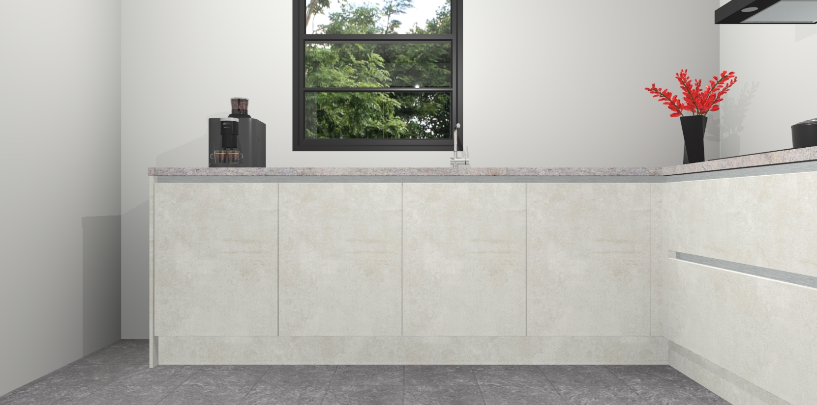 Nederlandse keukens worden niet comfortabeler dan de Beton Opal greeploze keuken Porto! Deze prachtige en unieke keuken straalt sfeer uit en biedt tegelijkertijd praktische opbergoplossingen. Of u nu een meester-kok bent of een culinaire amateur, dit is de ideale keuze voor u! Deze keuken is ideaal voor grote gezinnen, huizen met veel gasten - of iedereen die graag thuis is - en heeft genoeg functies om uw gezin te voeden.