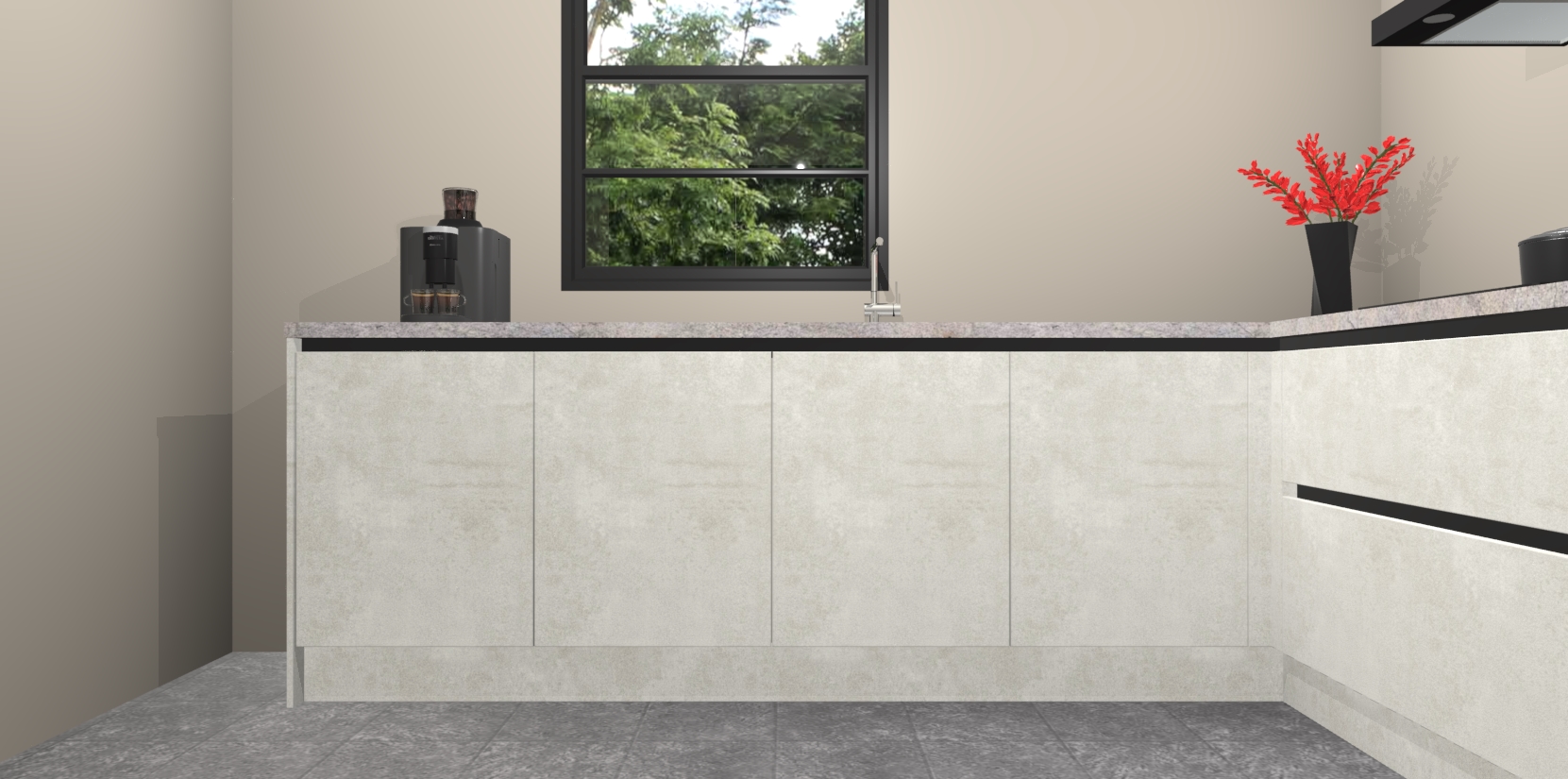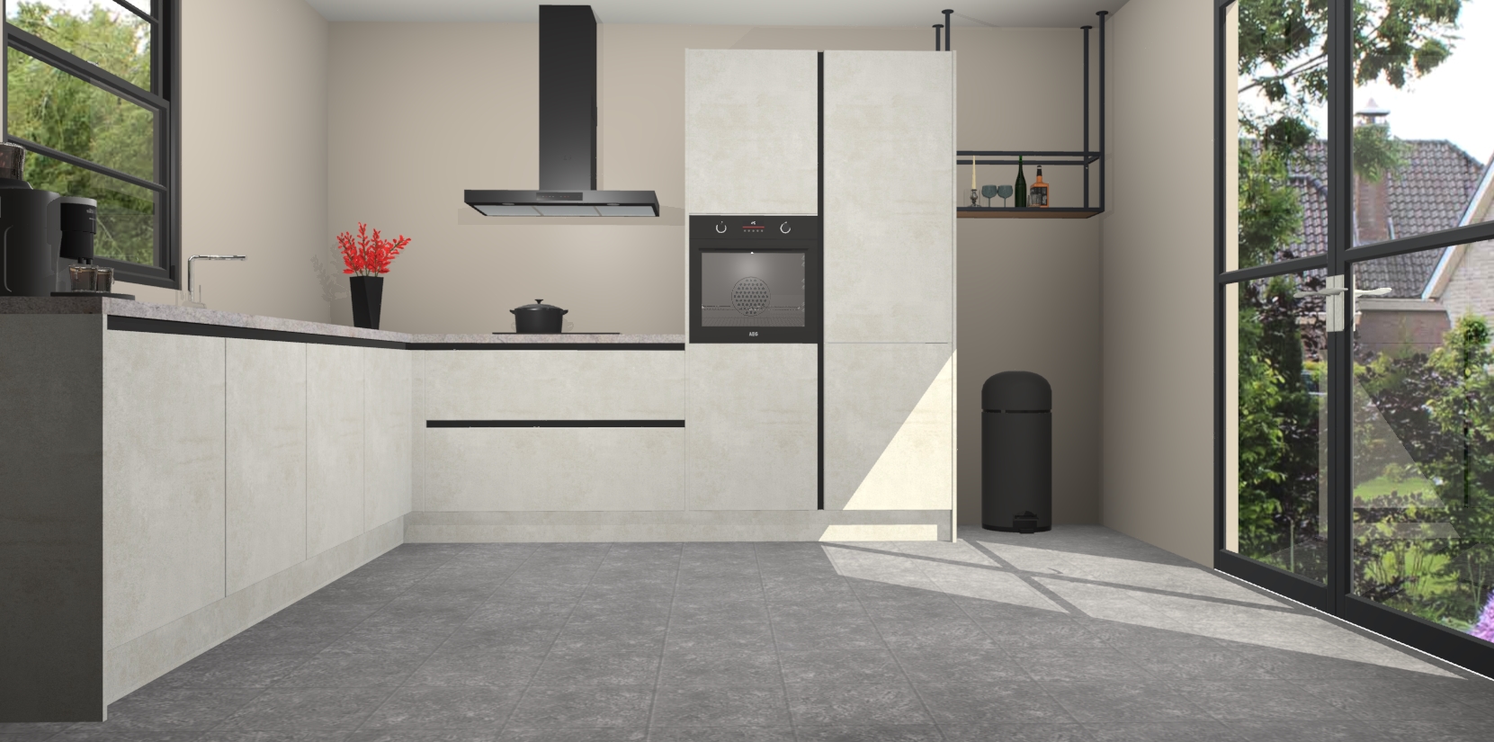 De Beton Opal greeploze keuken Porto heeft 5 ingebouwde apparaten - een oven, inductiekookplaat, afzuigkap, vaatwasser en koelkast - waarmee u in een handomdraai heerlijke gerechten bereidt. Soft-close deuren zorgen voor nog meer functionaliteit en gemak. En dit alles voor een onverslaanbaar vaste prijs. En als u nu bestelt, duurt de levering maar 7 weken! Wat nog ongelooflijker is, is dat onze kasten voor gemonteerd worden geleverd.