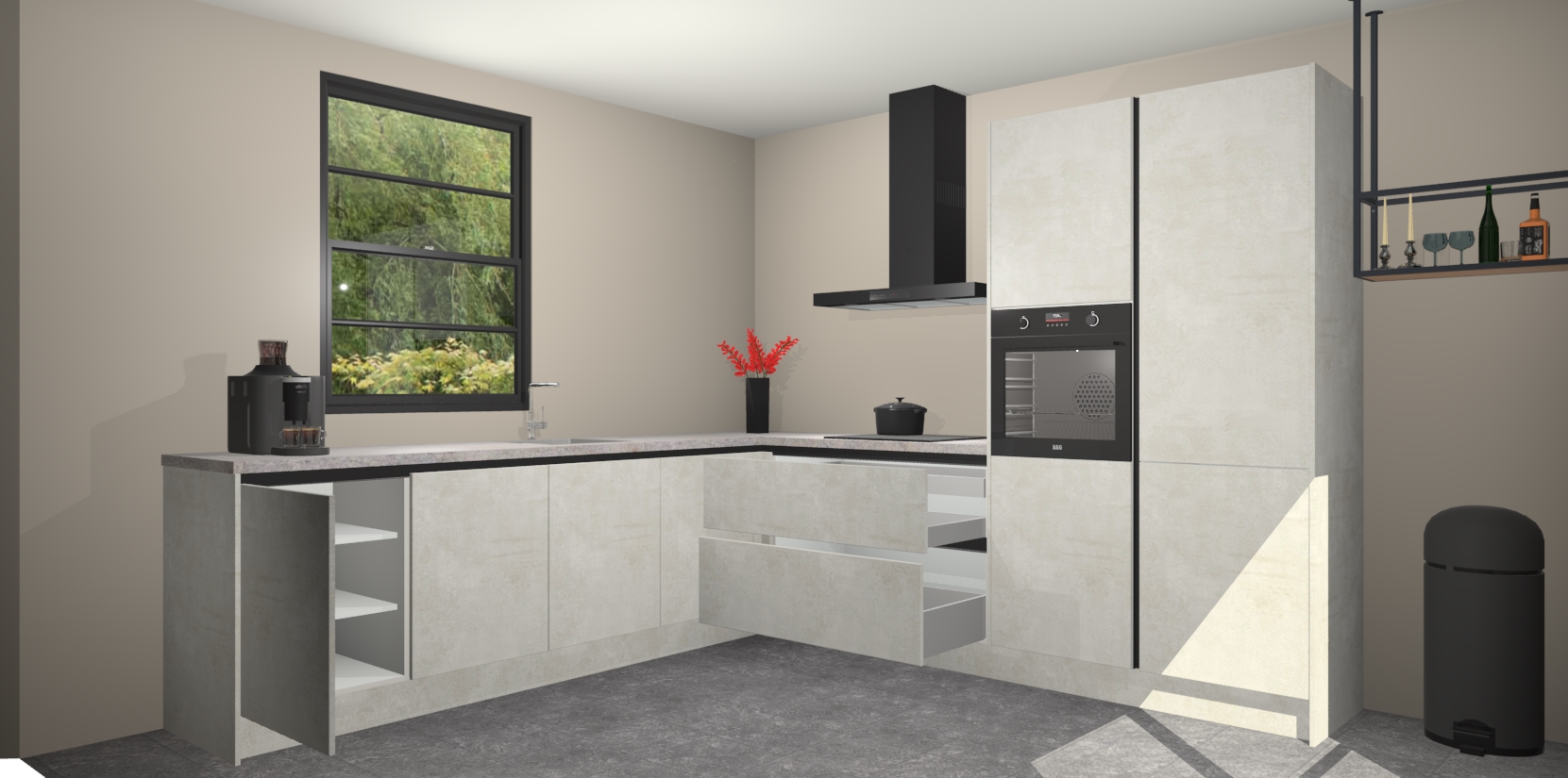 Nederlandse keukens worden niet comfortabeler dan de Beton Opal greeploze keuken Porto! Deze prachtige en unieke keuken straalt sfeer uit en biedt tegelijkertijd praktische opbergoplossingen. Of u nu een meester-kok bent of een culinaire amateur, dit is de ideale keuze voor u! Deze keuken is ideaal voor grote gezinnen, huizen met veel gasten - of iedereen die graag thuis is - en heeft genoeg functies om uw gezin te voeden.