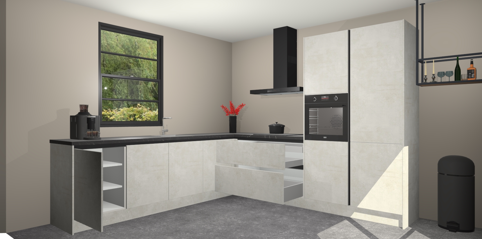 Nederlandse keukens worden niet comfortabeler dan de Beton Opal greeploze keuken Porto! Deze prachtige en unieke keuken straalt sfeer uit en biedt tegelijkertijd praktische opbergoplossingen. Of u nu een meester-kok bent of een culinaire amateur, dit is de ideale keuze voor u! Deze keuken is ideaal voor grote gezinnen, huizen met veel gasten - of iedereen die graag thuis is - en heeft genoeg functies om uw gezin te voeden.