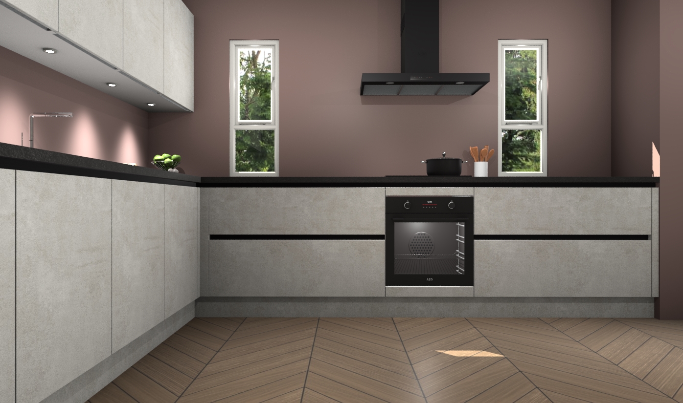 De beton opal greeploze keuken is een ideale hoekkeuken en heeft alle functies en apparatuur die u maar nodig kunt hebben. Bij de bestelling krijgt u een oven, inductiekookplaat, afzuigkap, vaatwasser en koelkast - deze kunnen desgewenst eenvoudig worden uitgebreid naar AEG na bestellen. Elke kast wordt ook voor gemonteerd geleverd met soft close deuren die jarenlang gebruik beloven. Stelt u zich voor dat u geen gedoe heeft met vervelende montage - vanaf het moment dat u uw bestelling plaats, duurt het slechts 7 weken voor het bij u thuis geleverd wordt.