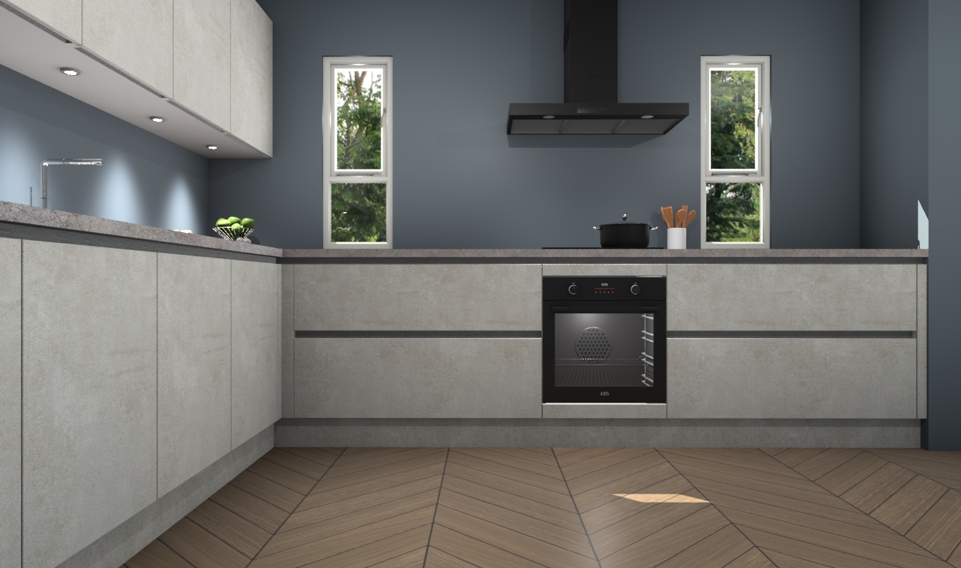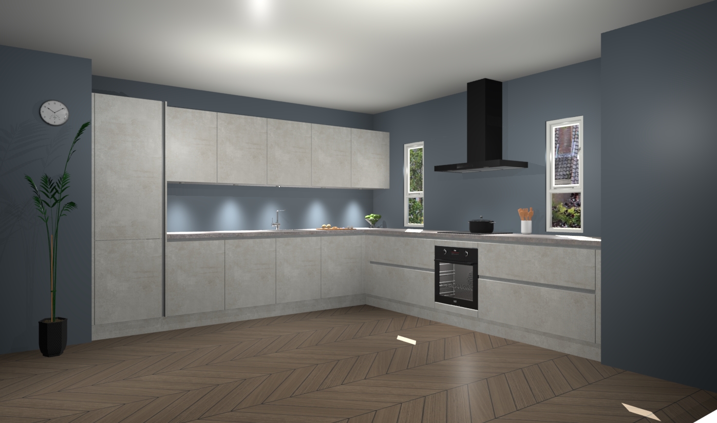De beton opal greeploze keuken is een ideale hoekkeuken en heeft alle functies en apparatuur die u maar nodig kunt hebben. Bij de bestelling krijgt u een oven, inductiekookplaat, afzuigkap, vaatwasser en koelkast - deze kunnen desgewenst eenvoudig worden uitgebreid naar AEG na bestellen. Elke kast wordt ook voor gemonteerd geleverd met soft close deuren die jarenlang gebruik beloven. Stelt u zich voor dat u geen gedoe heeft met vervelende montage - vanaf het moment dat u uw bestelling plaats, duurt het slechts 7 weken voor het bij u thuis geleverd wordt.