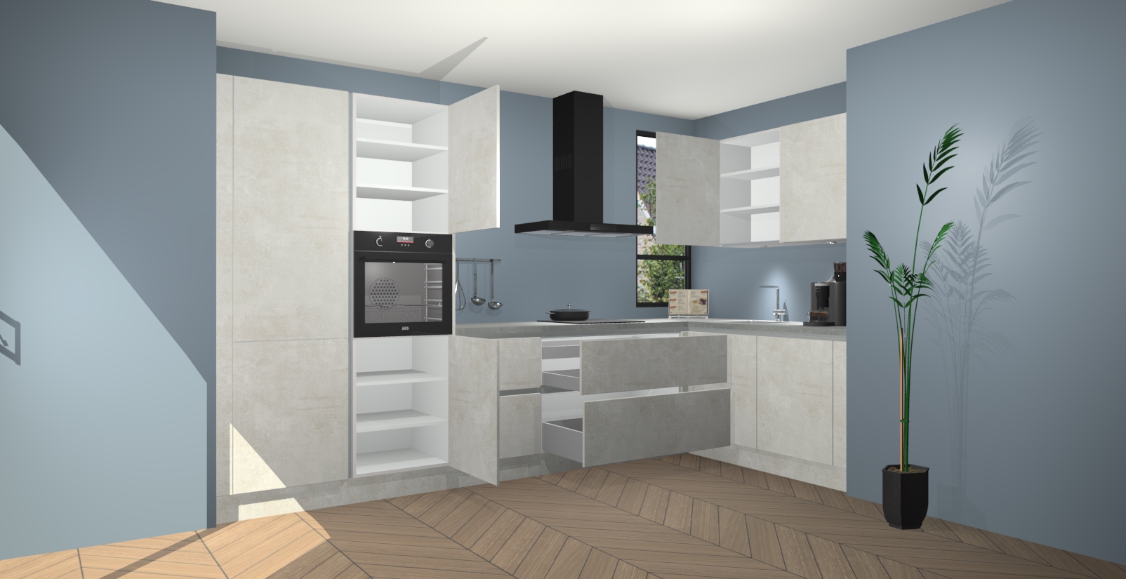 Welkom in uw nieuwe moderne keuken! Laat ons u voorstellen aan de Beton Opal greeploze keuken Vlaanderen . Deze prachtige hoekkeuken straalt exclusiviteit en luxe uit als geen ander. Het strakke design, de tijdloze kleuren en het greeploze model maken van deze keuken een moderne klassieker. En met voldoende opbergruimte heeft deze keuken echt voor ieder wat wils.