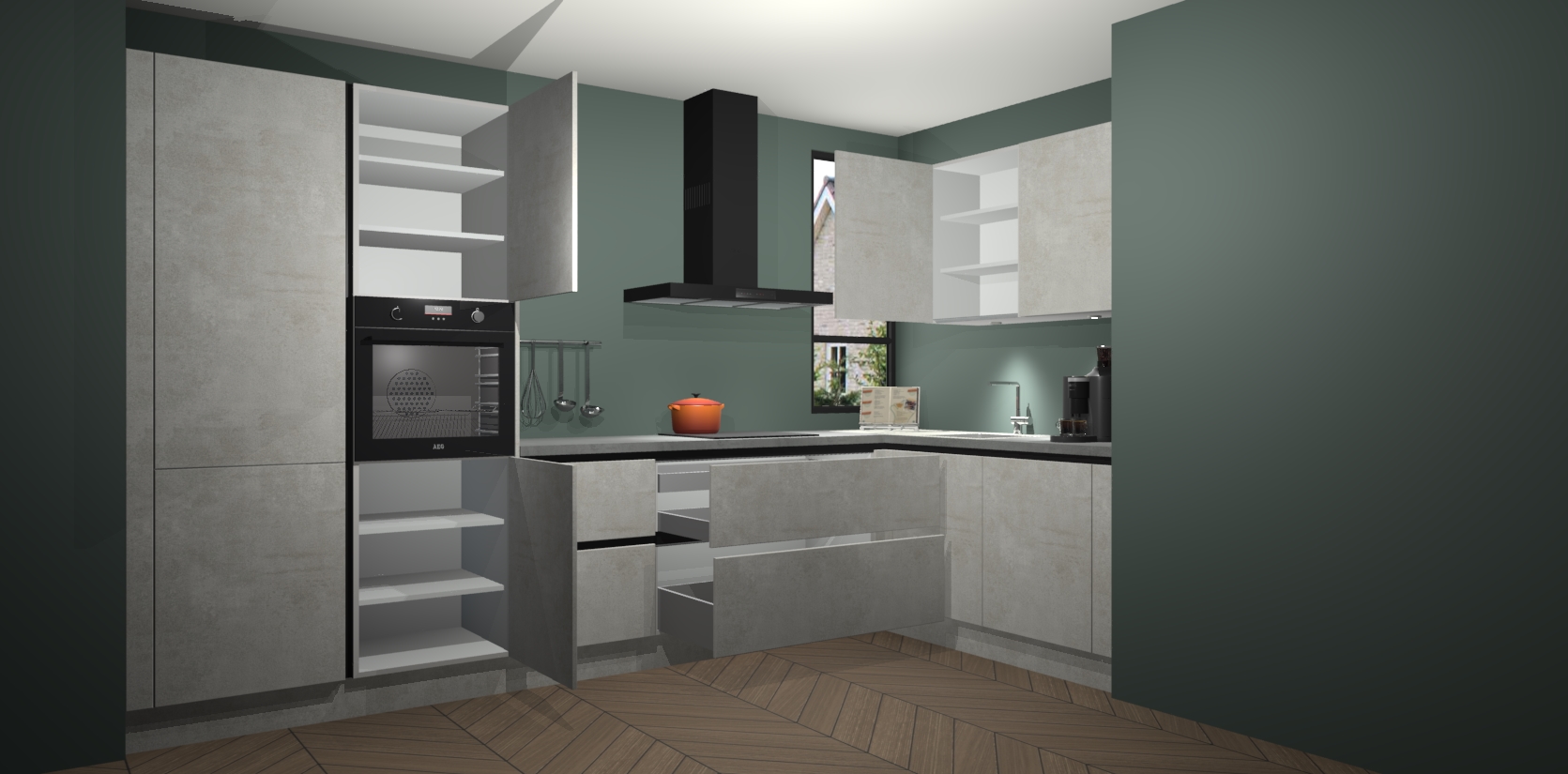 Welkom in uw nieuwe moderne keuken! Laat ons u voorstellen aan de Beton Opal greeploze keuken Vlaanderen. Deze prachtige hoekkeuken straalt exclusiviteit en luxe uit als geen ander. Het strakke design, de tijdloze kleuren en het greeploze model maken van deze keuken een moderne klassieker. En met voldoende opbergruimte heeft deze keuken echt voor ieder wat wils.