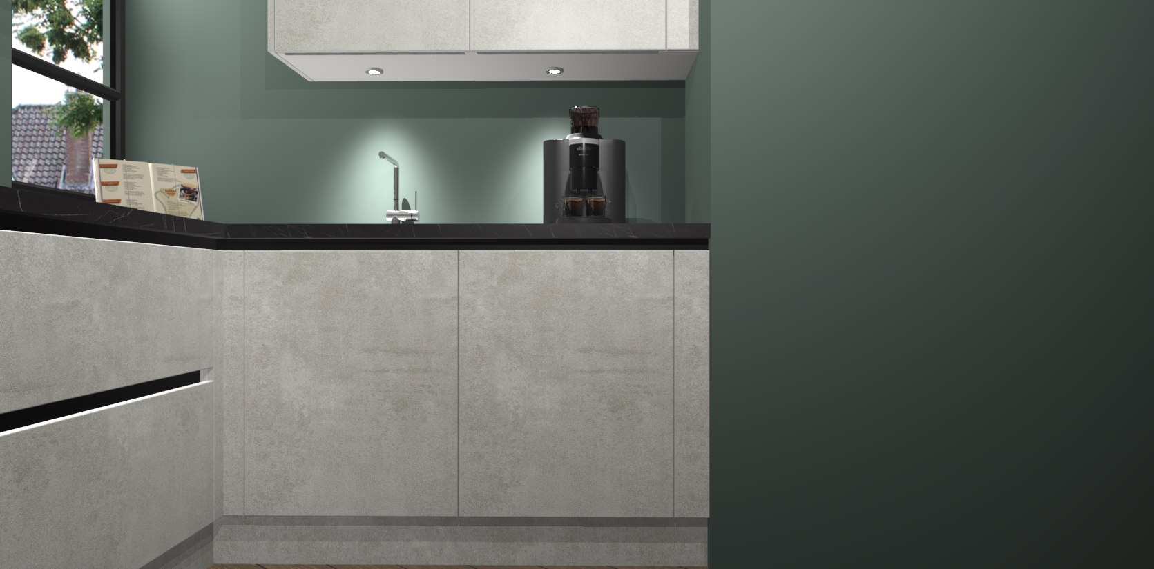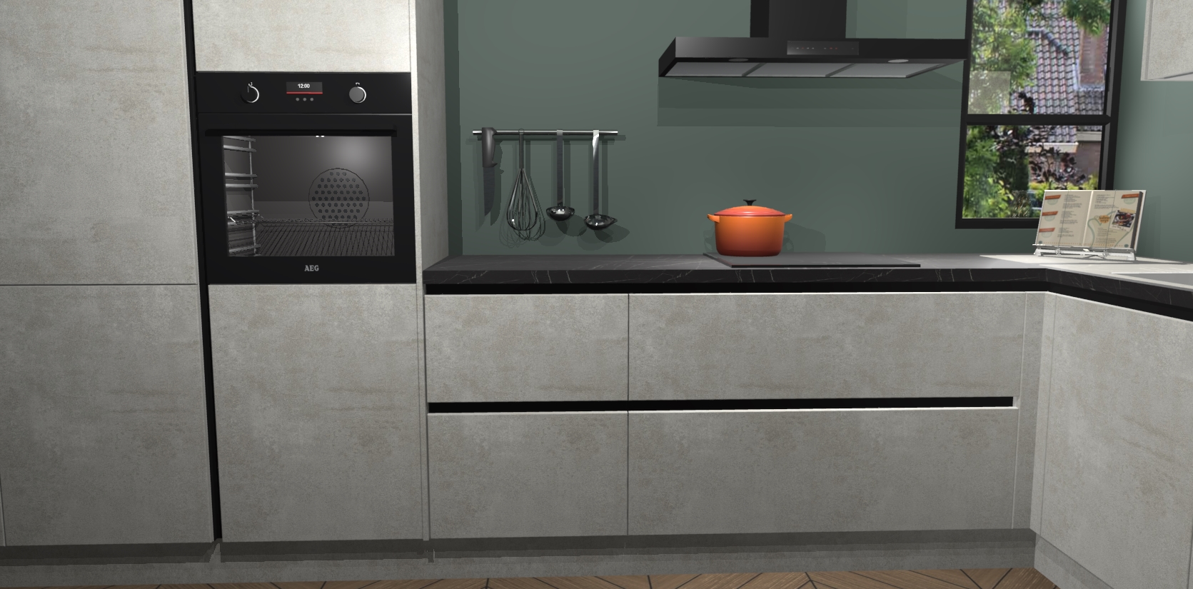 Welkom in uw nieuwe moderne keuken! Laat ons u voorstellen aan de Beton Opal greeploze keuken Vlaanderen. Deze prachtige hoekkeuken straalt exclusiviteit en luxe uit als geen ander. Het strakke design, de tijdloze kleuren en het greeploze model maken van deze keuken een moderne klassieker. En met voldoende opbergruimte heeft deze keuken echt voor ieder wat wils.