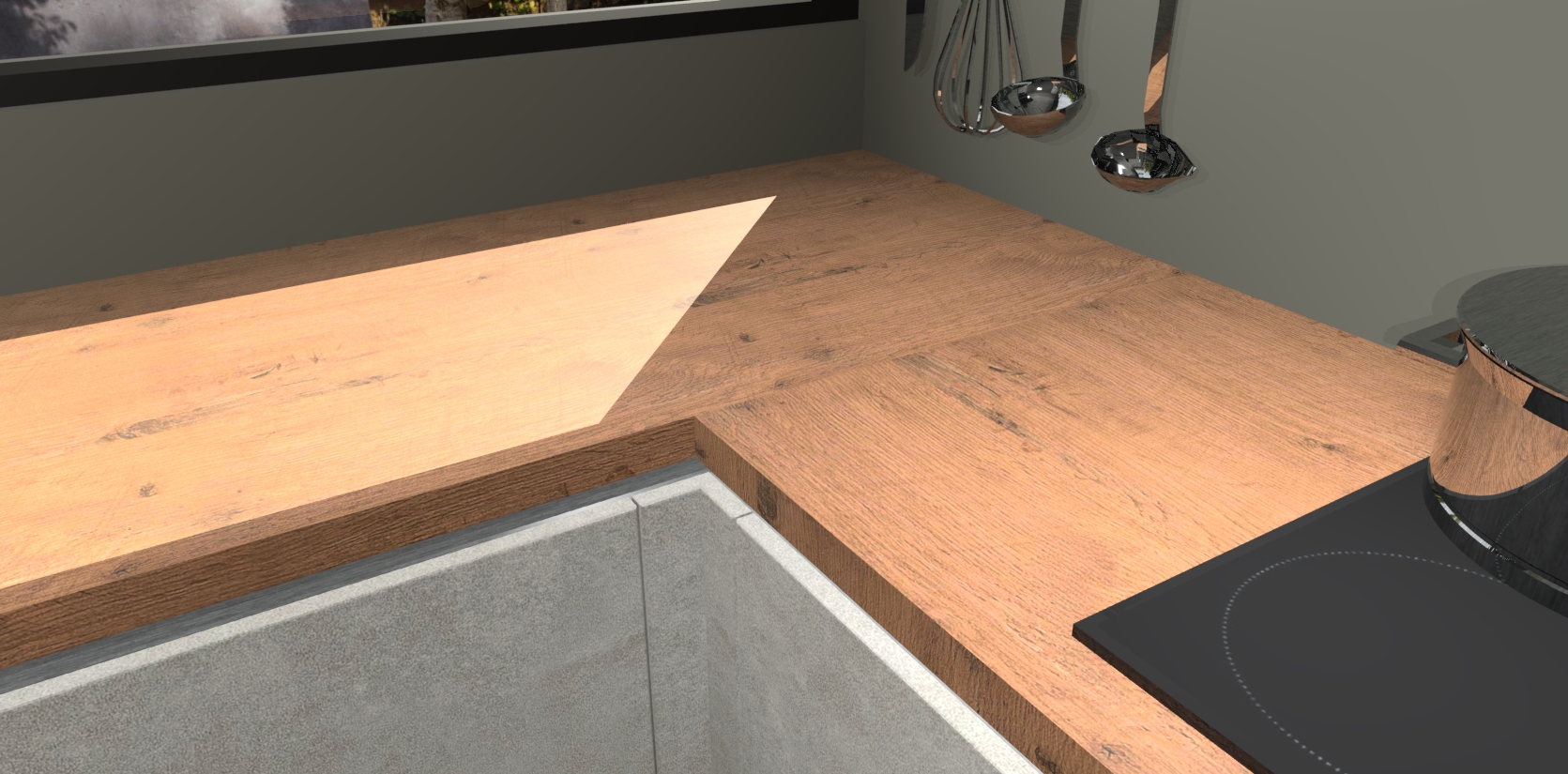 - Bij een hoekwerkblad zijn de hoeken in gevreesd en op maat gemaakt