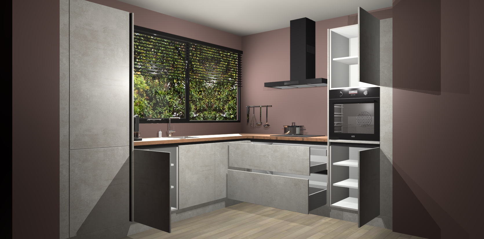 Met een modern, tijdloos design en ruime opslagruimte, zult u zich in no-time thuis voelen in uw nieuwe keuken. Uw leven wordt eenvoudiger met de soft-close deuren die voor het ultieme stille comfort zorgen - geen geluid dat u stoort terwijl u kookt. Ook is de keuken voorzien van 5 ingebouwde apparaten: een oven, inductie kookplaat, afzuigkap, vaatwasser en koelkast. Deze kunnen gemakkelijk na bestelling worden bijgewerkt naar AEG - waardoor uw luxe ervaring compleet is.