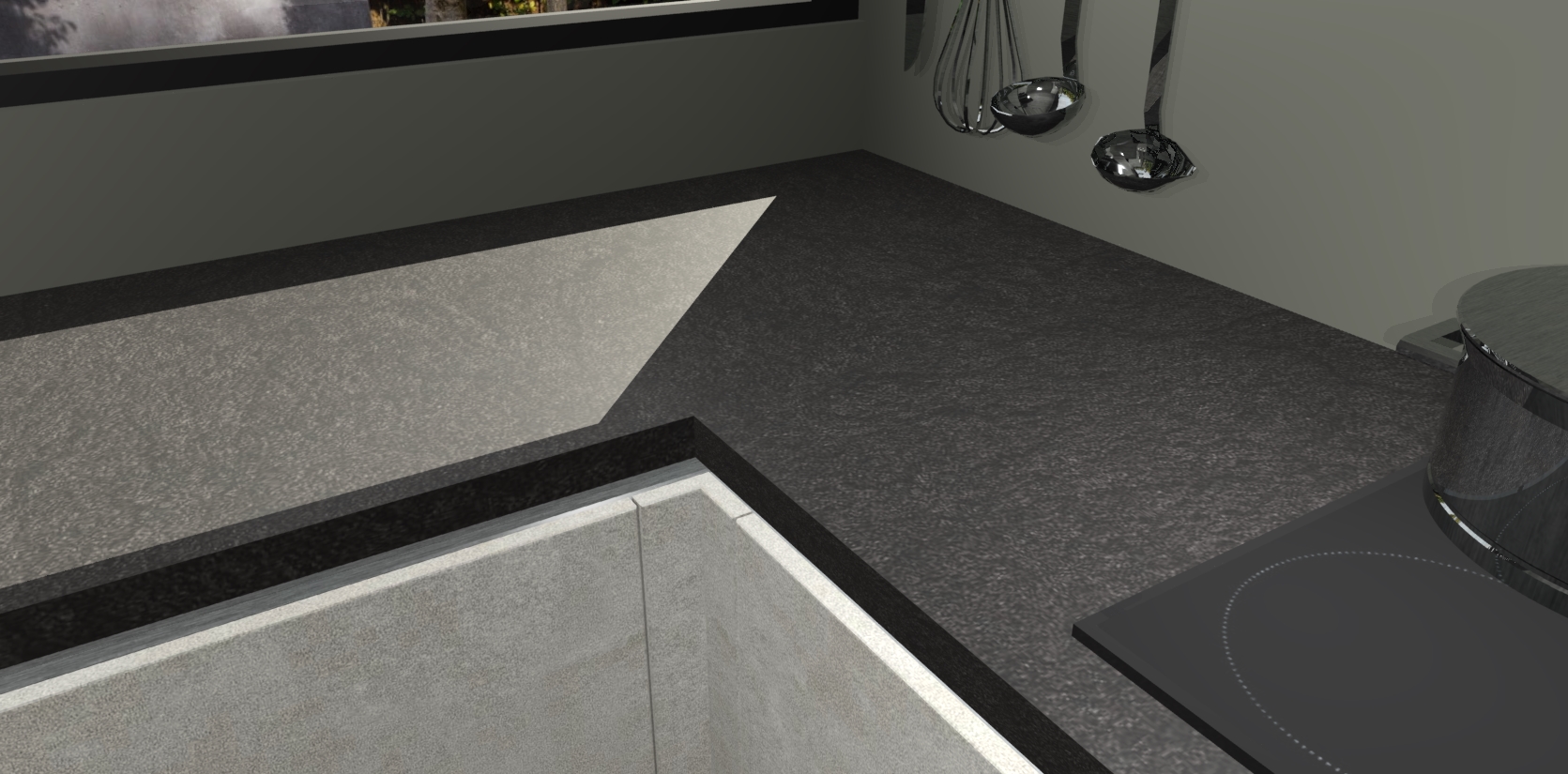 - Bij een hoekwerkblad zijn de hoeken in gevreesd en op maat gemaakt