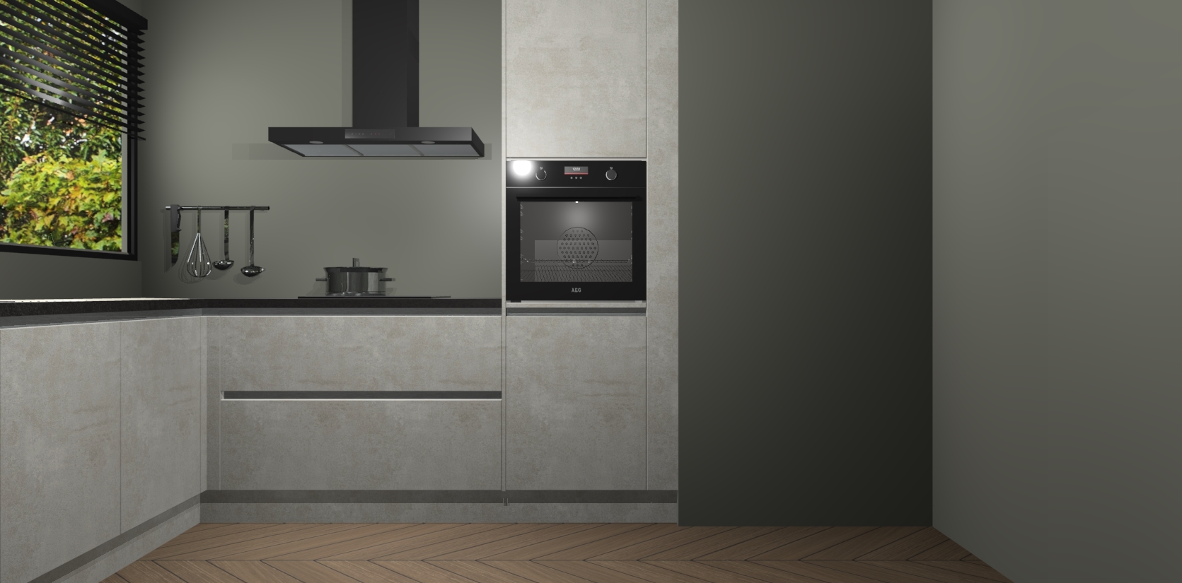 Met een modern, tijdloos design en ruime opslagruimte, zult u zich in no-time thuis voelen in uw nieuwe keuken. Uw leven wordt eenvoudiger met de soft-close deuren die voor het ultieme stille comfort zorgen - geen geluid dat u stoort terwijl u kookt. Ook is de keuken voorzien van 5 ingebouwde apparaten: een oven, inductie kookplaat, afzuigkap, vaatwasser en koelkast. Deze kunnen gemakkelijk na bestelling worden bijgewerkt naar AEG - waardoor uw luxe ervaring compleet is.