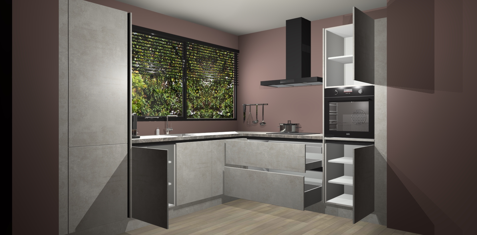 Met een modern, tijdloos design en ruime opslagruimte, zult u zich in no-time thuis voelen in uw nieuwe keuken. Uw leven wordt eenvoudiger met de soft-close deuren die voor het ultieme stille comfort zorgen - geen geluid dat u stoort terwijl u kookt. Ook is de keuken voorzien van 5 ingebouwde apparaten: een oven, inductie kookplaat, afzuigkap, vaatwasser en koelkast. Deze kunnen gemakkelijk na bestelling worden bijgewerkt naar AEG - waardoor uw luxe ervaring compleet is.