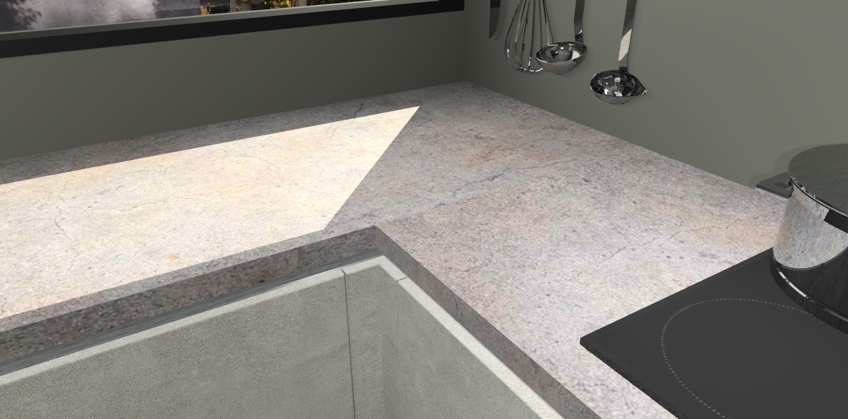 - Bij een hoekwerkblad zijn de hoeken in gevreesd en op maat gemaakt