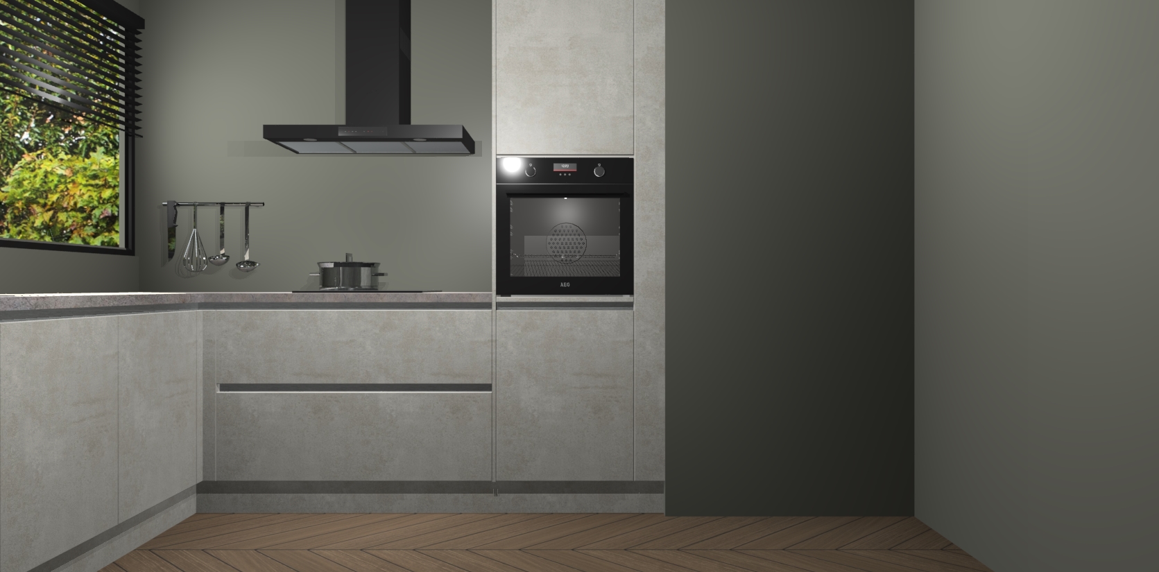 Met een modern, tijdloos design en ruime opslagruimte, zult u zich in no-time thuis voelen in uw nieuwe keuken. Uw leven wordt eenvoudiger met de soft-close deuren die voor het ultieme stille comfort zorgen - geen geluid dat u stoort terwijl u kookt. Ook is de keuken voorzien van 5 ingebouwde apparaten: een oven, inductie kookplaat, afzuigkap, vaatwasser en koelkast. Deze kunnen gemakkelijk na bestelling worden bijgewerkt naar AEG - waardoor uw luxe ervaring compleet is.