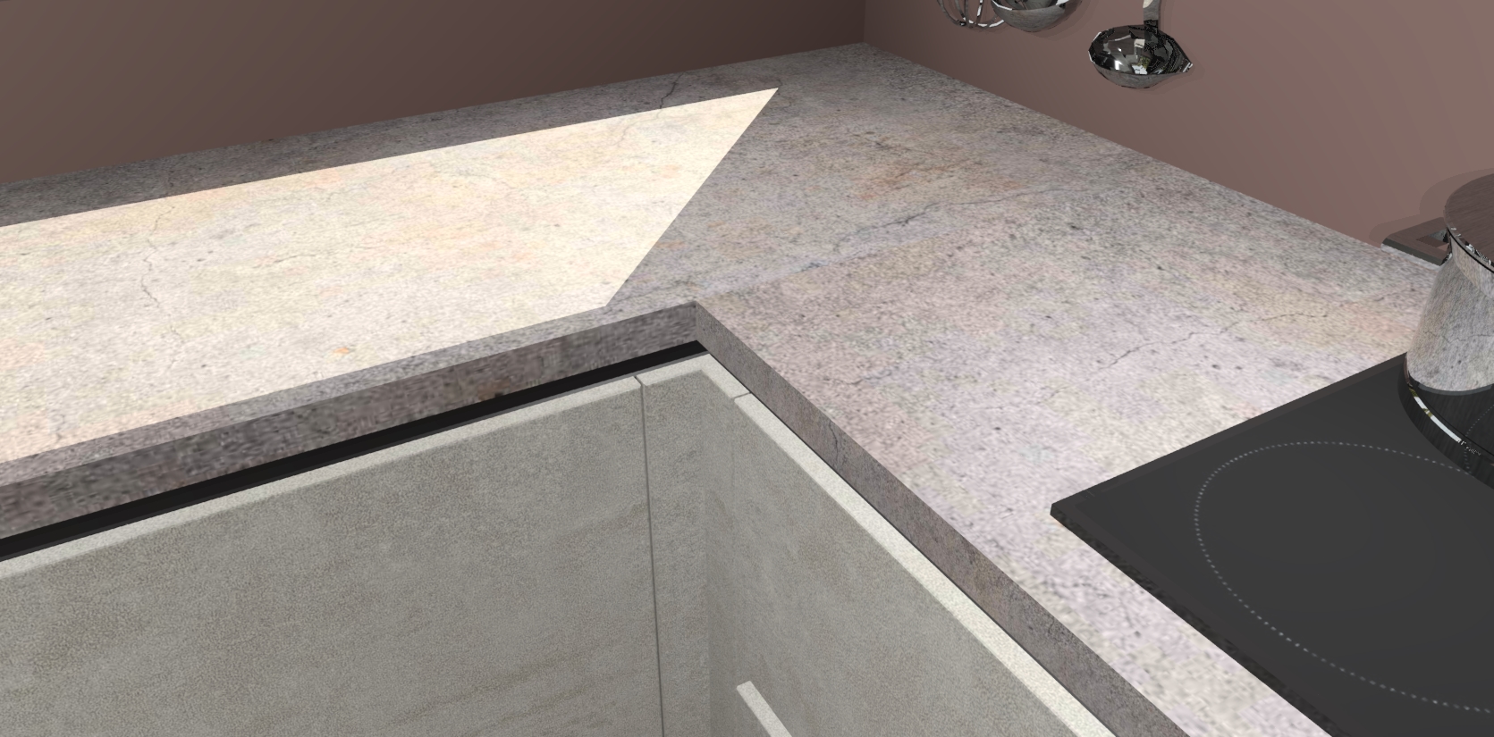 - Bij een hoekwerkblad zijn de hoeken in gevreesd en op maat gemaakt