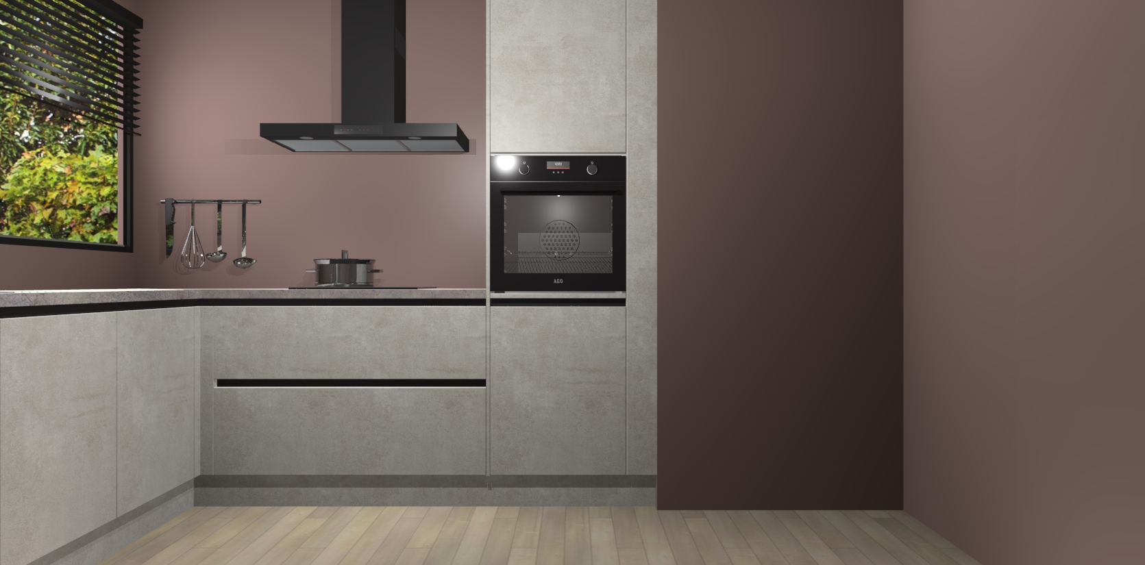 Met een modern, tijdloos design en ruime opslagruimte, zult u zich in no-time thuis voelen in uw nieuwe keuken. Uw leven wordt eenvoudiger met de soft-close deuren die voor het ultieme stille comfort zorgen - geen geluid dat u stoort terwijl u kookt. Ook is de keuken voorzien van 5 ingebouwde apparaten: een oven, inductie kookplaat, afzuigkap, vaatwasser en koelkast. Deze kunnen gemakkelijk na bestelling worden bijgewerkt naar AEG - waardoor uw luxe ervaring compleet is.