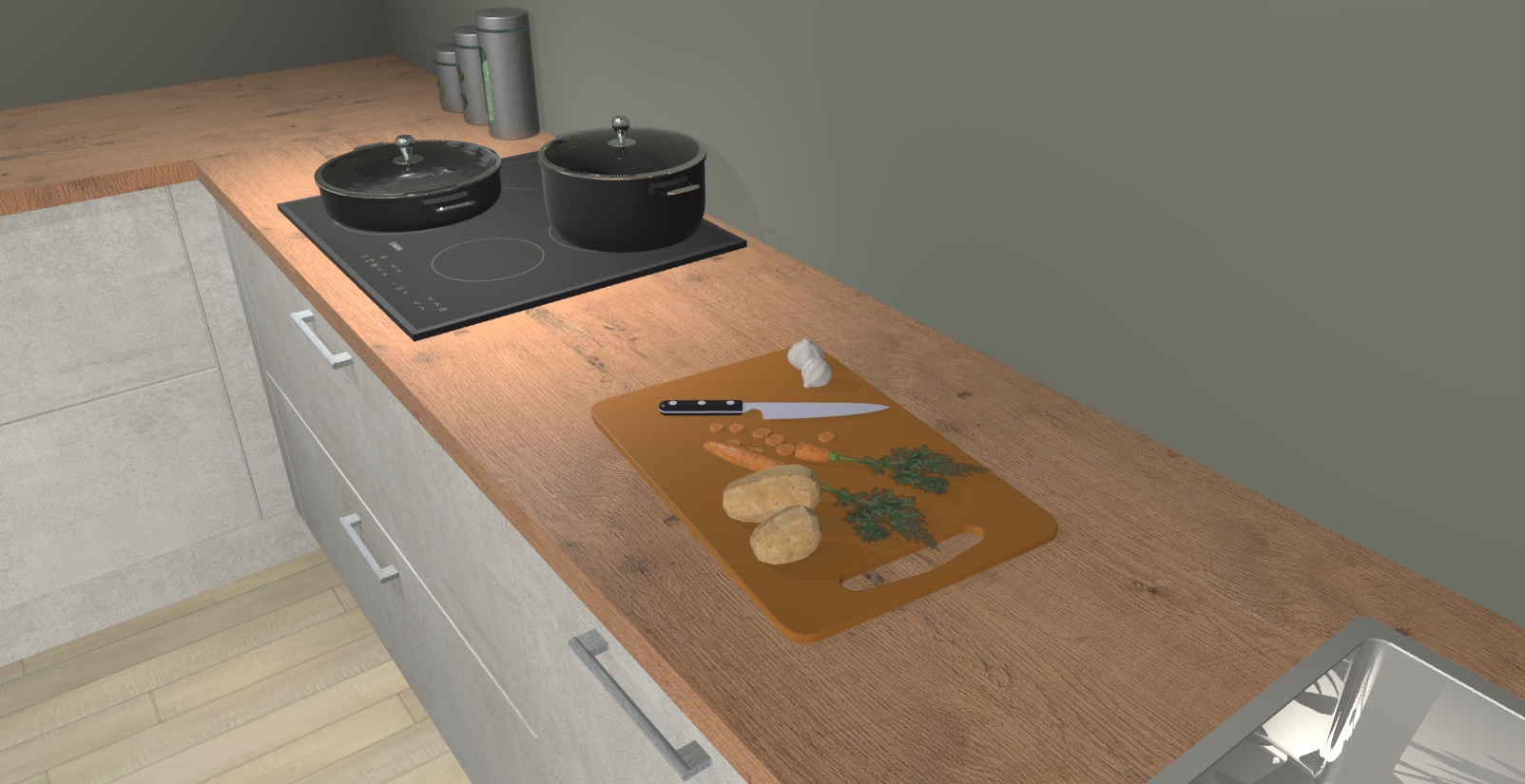 Inclusief plinten, stelpoten en werkblad