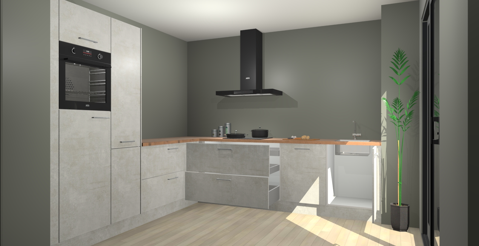 Laat u verrassen door de nieuwste en meest innovatieve keuken van dit moment: De Beton Opal keuken Antibes. Deze chique keuken straalt een stijlvolle sfeer uit die zeker bewondering zal oogsten bij uw gasten. Als u op zoek bent naar voldoende opbergruimte voor al uw keukengadgets en -gerei, dan is dit de perfecte oplossing. Met ingebouwde apparatuur zoals een oven, inductiekookplaat, afzuigkap, vaatwasser en koelkast! U krijgt niet alleen veel opbergruimte, maar ook een betrouwbaar soft close-deursysteem dat ervoor zorgt dat er nooit meer kastdeuren dichtslaan!
