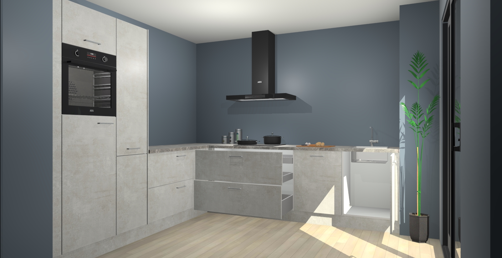 Laat u verrassen door de nieuwste en meest innovatieve keuken van dit moment: De Beton Opal keuken Antibes. Deze chique keuken straalt een stijlvolle sfeer uit die zeker bewondering zal oogsten bij uw gasten. Als u op zoek bent naar voldoende opbergruimte voor al uw keukengadgets en -gerei, dan is dit de perfecte oplossing. Met ingebouwde apparatuur zoals een oven, inductiekookplaat, afzuigkap, vaatwasser en koelkast! U krijgt niet alleen veel opbergruimte, maar ook een betrouwbaar soft close-deursysteem dat ervoor zorgt dat er nooit meer kastdeuren dichtslaan!