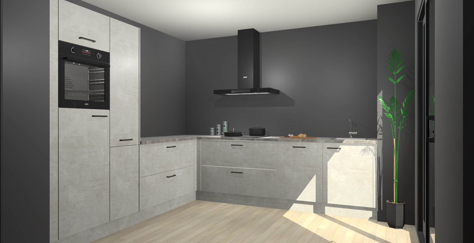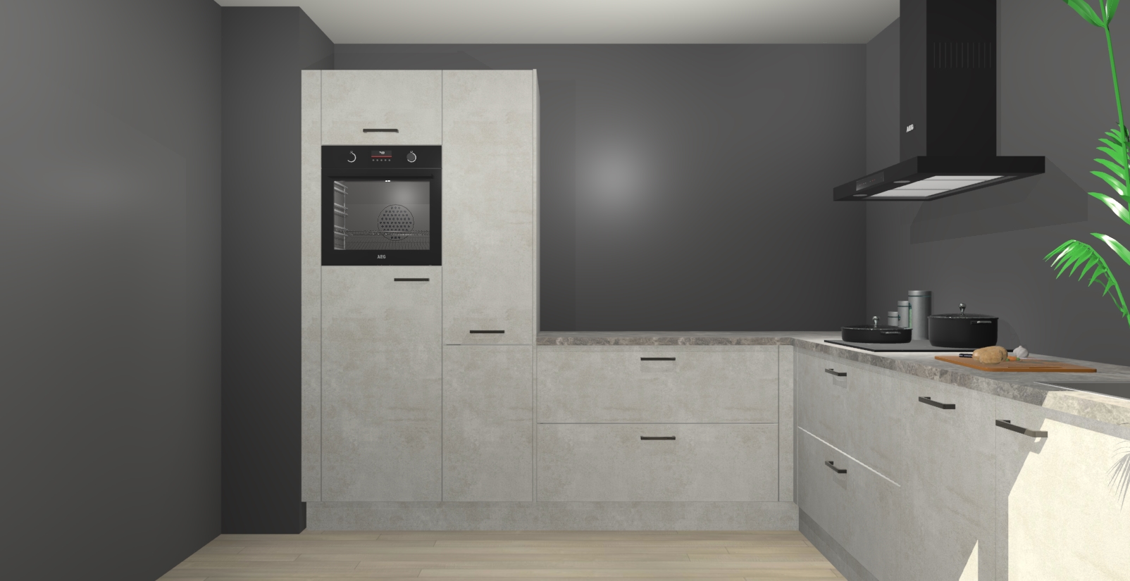 Laat u verrassen door de nieuwste en meest innovatieve keuken van dit moment: De Beton Opal keuken Antibes. Deze chique keuken straalt een stijlvolle sfeer uit die zeker bewondering zal oogsten bij uw gasten. Als u op zoek bent naar voldoende opbergruimte voor al uw keukengadgets en -gerei, dan is dit de perfecte oplossing. Met ingebouwde apparatuur zoals een oven, inductiekookplaat, afzuigkap, vaatwasser en koelkast! U krijgt niet alleen veel opbergruimte, maar ook een betrouwbaar soft close-deursysteem dat ervoor zorgt dat er nooit meer kastdeuren dichtslaan!