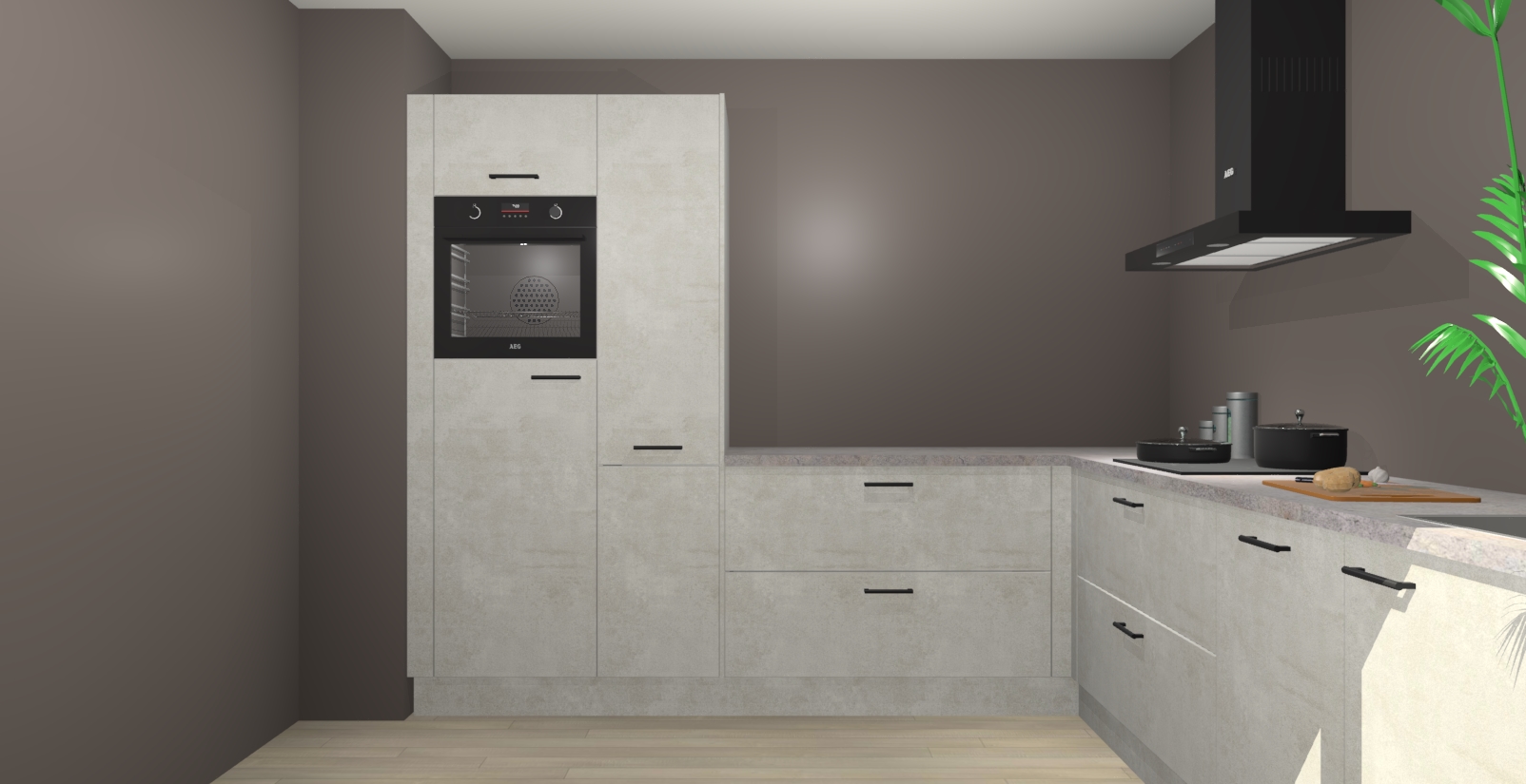 Laat u verrassen door de nieuwste en meest innovatieve keuken van dit moment: De Beton Opal keuken Antibes. Deze chique keuken straalt een stijlvolle sfeer uit die zeker bewondering zal oogsten bij uw gasten. Als u op zoek bent naar voldoende opbergruimte voor al uw keukengadgets en -gerei, dan is dit de perfecte oplossing. Met ingebouwde apparatuur zoals een oven, inductiekookplaat, afzuigkap, vaatwasser en koelkast! U krijgt niet alleen veel opbergruimte, maar ook een betrouwbaar soft close-deursysteem dat ervoor zorgt dat er nooit meer kastdeuren dichtslaan!