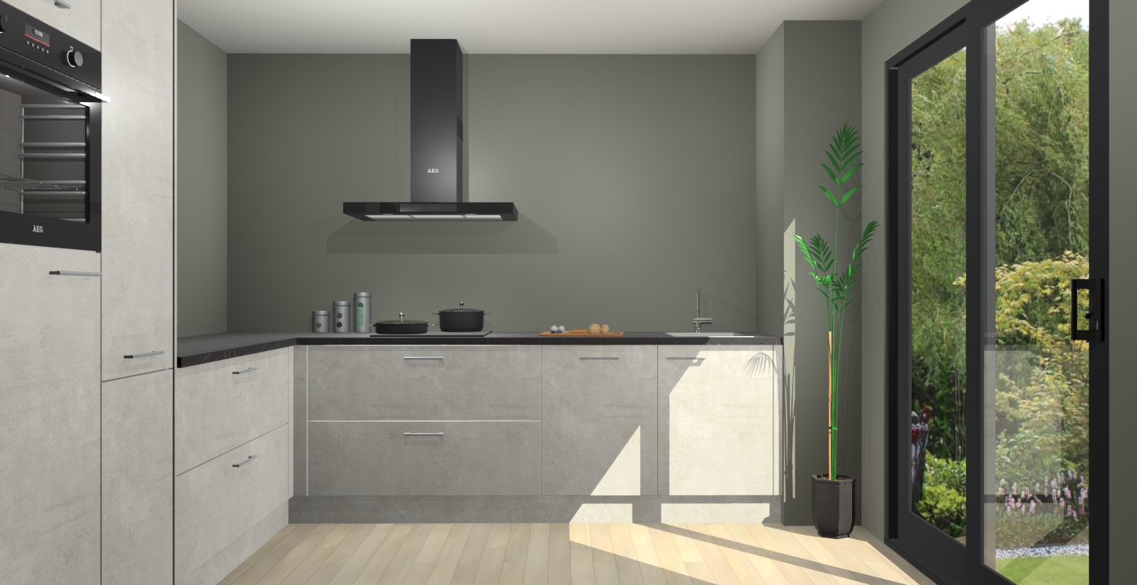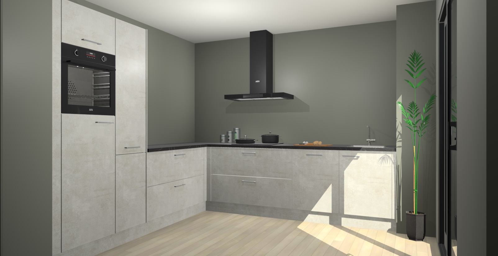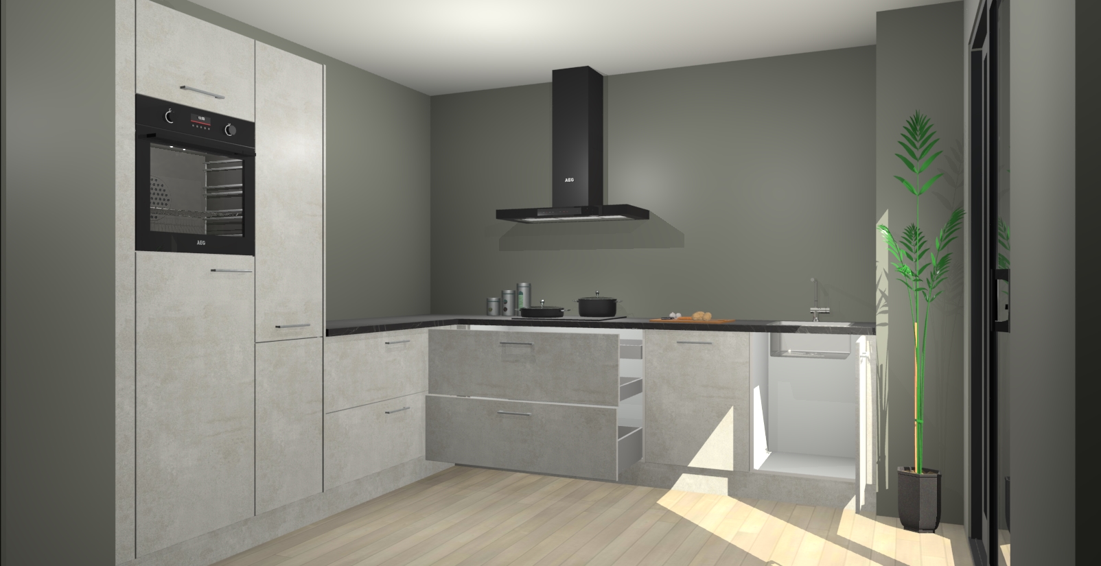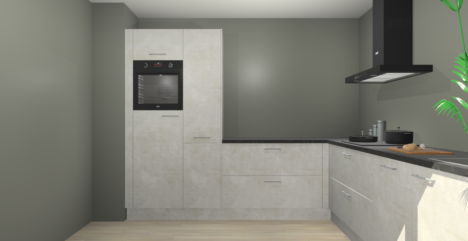 Laat u verrassen door de nieuwste en meest innovatieve keuken van dit moment: De Beton Opal keuken Antibes. Deze chique keuken straalt een stijlvolle sfeer uit die zeker bewondering zal oogsten bij uw gasten. Als u op zoek bent naar voldoende opbergruimte voor al uw keukengadgets en -gerei, dan is dit de perfecte oplossing. Met ingebouwde apparatuur zoals een oven, inductiekookplaat, afzuigkap, vaatwasser en koelkast! U krijgt niet alleen veel opbergruimte, maar ook een betrouwbaar soft close-deursysteem dat ervoor zorgt dat er nooit meer kastdeuren dichtslaan!