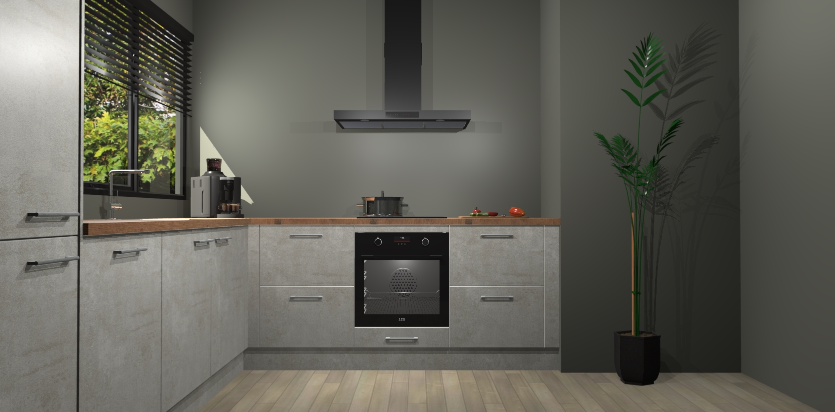 Met een modern, tijdloos design en ruime opslagruimte, zult u zich in no-time thuis voelen in uw nieuwe keuken. Uw leven wordt eenvoudiger met de soft-close deuren die voor het ultieme stille comfort zorgen - geen geluid dat u stoort terwijl u kookt. Ook is de keuken voorzien van 5 ingebouwde apparaten: een oven, inductie kookplaat, afzuigkap, vaatwasser en koelkast. Deze kunnen gemakkelijk na bestelling worden bijgewerkt naar AEG - waardoor uw luxe ervaring compleet is.