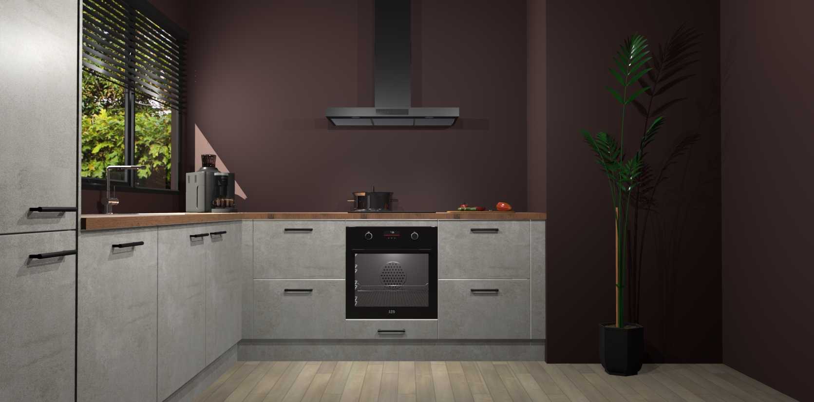 Met een modern, tijdloos design en ruime opslagruimte, zult u zich in no-time thuis voelen in uw nieuwe keuken. Uw leven wordt eenvoudiger met de soft-close deuren die voor het ultieme stille comfort zorgen - geen geluid dat u stoort terwijl u kookt. Ook is de keuken voorzien van 5 ingebouwde apparaten: een oven, inductie kookplaat, afzuigkap, vaatwasser en koelkast. Deze kunnen gemakkelijk na bestelling worden bijgewerkt naar AEG - waardoor uw luxe ervaring compleet is.