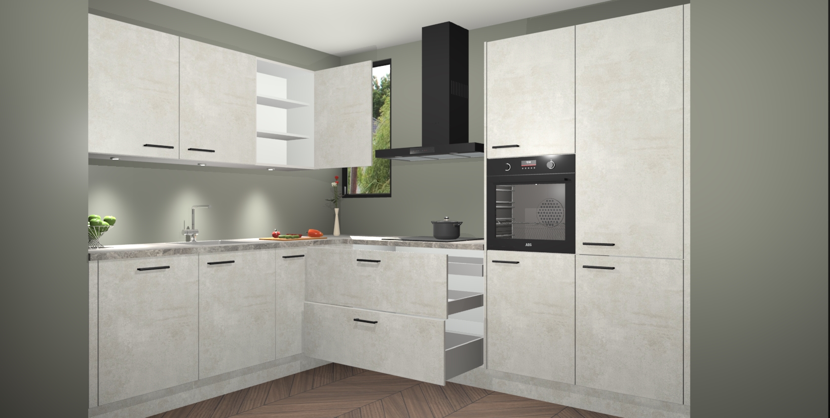De ruime opbergruimte van dit model maakt het bereiden van voedsel en het gebruik van apparaten snel en gemakkelijk. Het beste van alles is dat het wordt geleverd met vijf inbouwapparaten: een oven, inductiekookplaat, afzuigkap, vaatwasser en koelkast - die allemaal gemakkelijk kunnen worden opgewaardeerd naar AEG na aankoop. Wat de gemaksfactor nog groter maakt, is het feit dat alle cabines voorgemonteerd worden geleverd, zodat u er meteen mee aan de slag kunt!