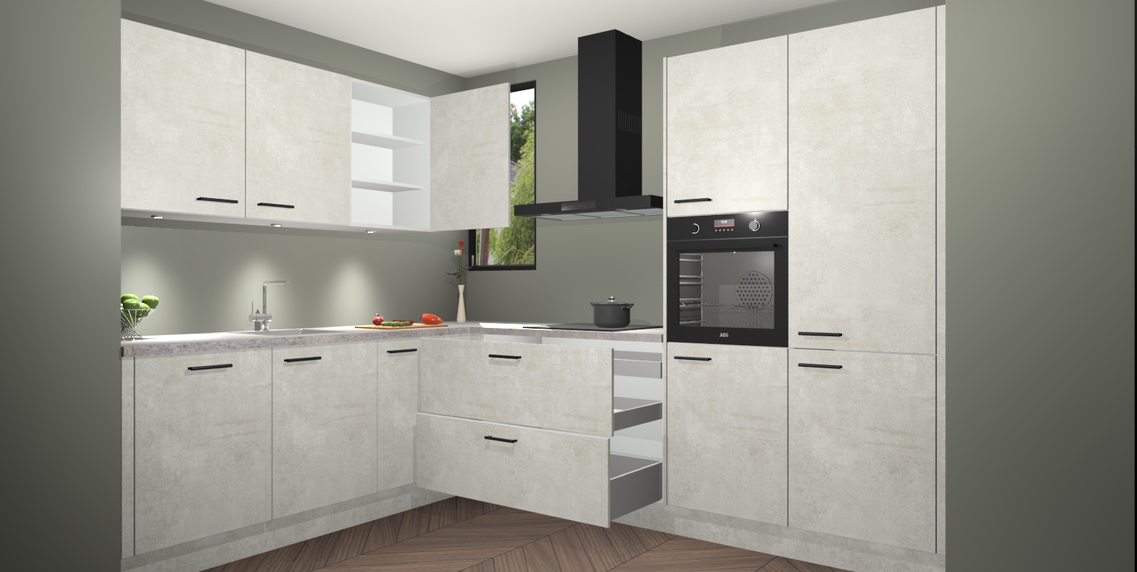 De ruime opbergruimte van dit model maakt het bereiden van voedsel en het gebruik van apparaten snel en gemakkelijk. Het beste van alles is dat het wordt geleverd met vijf inbouwapparaten: een oven, inductiekookplaat, afzuigkap, vaatwasser en koelkast - die allemaal gemakkelijk kunnen worden opgewaardeerd naar AEG na aankoop. Wat de gemaksfactor nog groter maakt, is het feit dat alle cabines voorgemonteerd worden geleverd, zodat u er meteen mee aan de slag kunt!