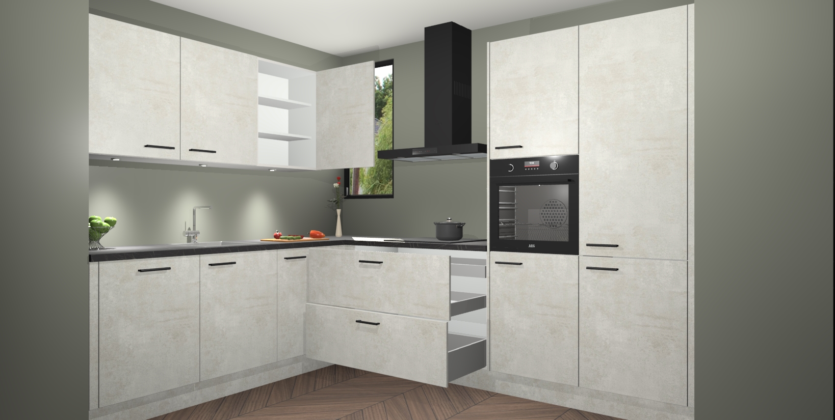 Maak u keuken elegant en verfijnd met de beton opal keuken Buenos Aires! Dit prachtige stuk heeft warme kleuren voor een strak, modern gevoel dat u de adem zal benemen. De handgrepen heeft net als de binnenkant van de kasten dezelfde beton opal afwerking, waardoor alles er nog beter uitziet.