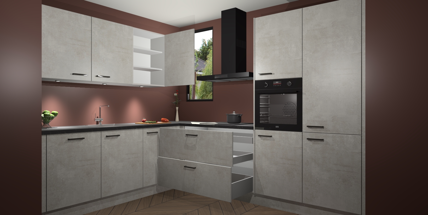Inclusief plinten, stelpoten en werkblad