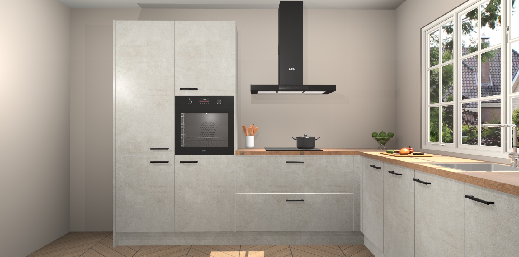 De keuken heeft veel opbergruimte, waardoor u alle ingrediënten gemakkelijk bereikbaar hebt staan. En daarnaast bevat deze volledig uitgeruste keuken ook 5 ingebouwde apparaten: een oven, inductiekookplaat, afzuigkap, vaatwasser en koelkast. Deze zijn heel eenvoudig na bestellen te upgraden naar AEG als u dit wilt. Bovendien zijn de softclose-kastdeuren ideaal; geef ze gewoon even een tikje en ze sluiten automatisch met geruisloze precisie.