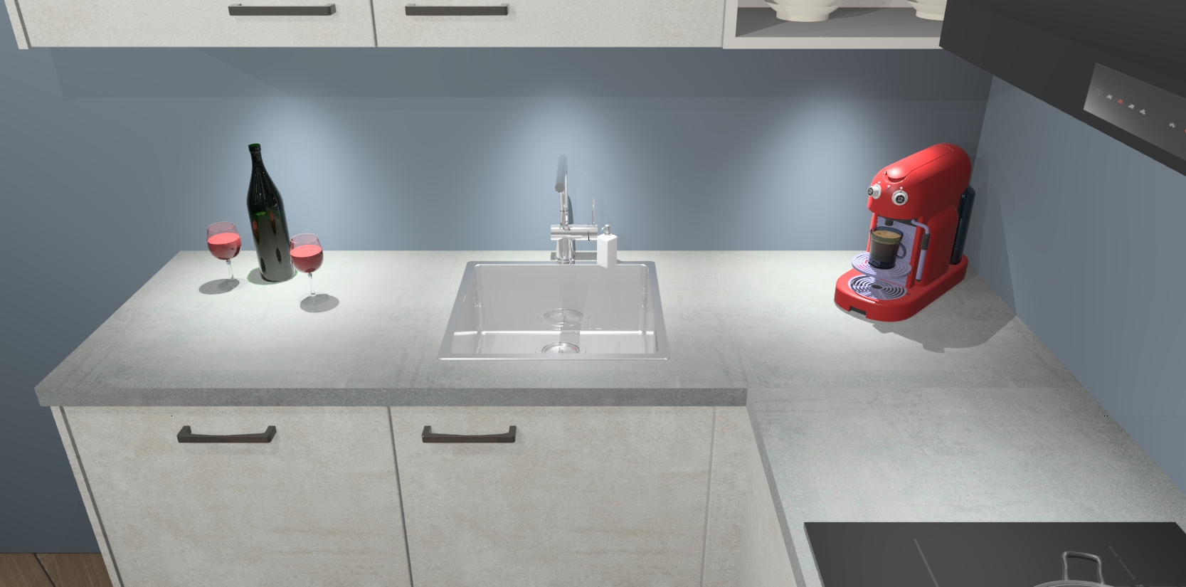 Inclusief plinten, stelpoten en werkblad