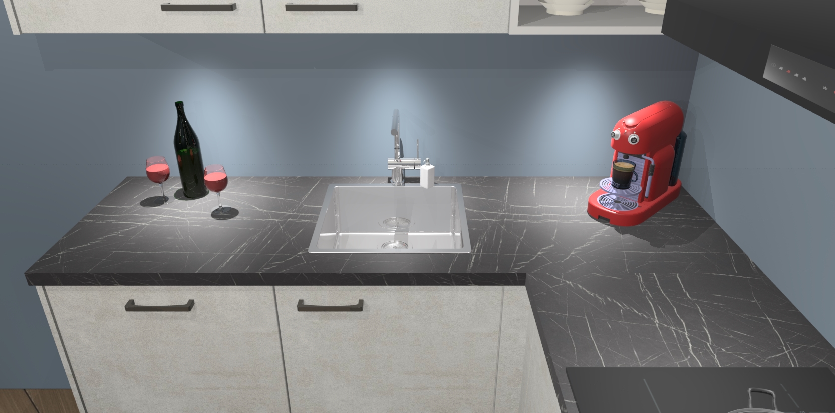 - Bij een hoekwerkblad zijn de hoeken in gevreesd en op maat gemaakt