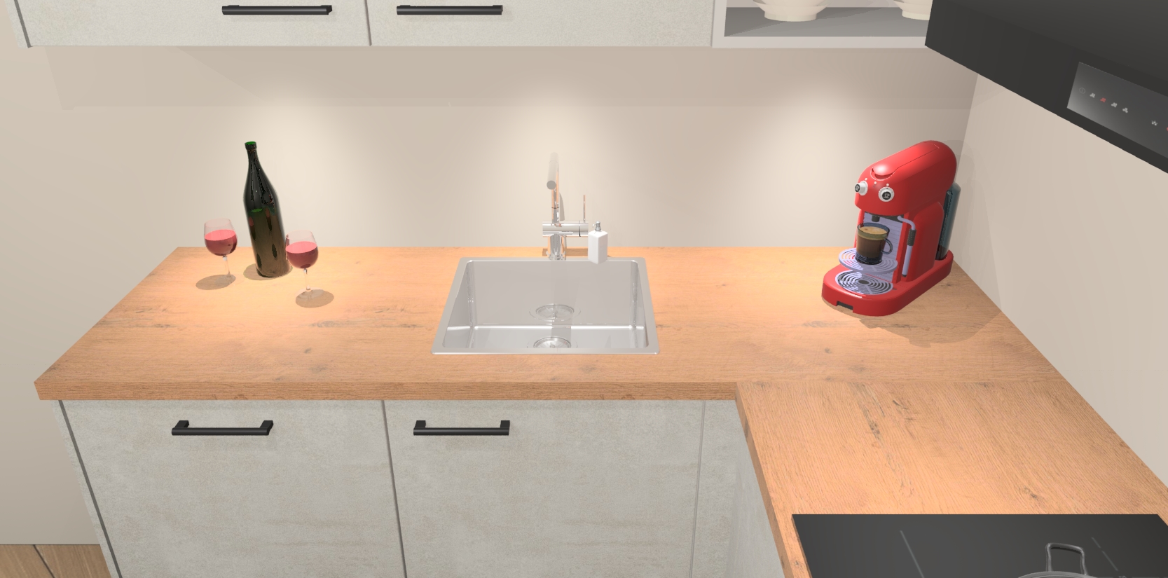 - De spoelbak is nog niet in gevreesd. Dit dient tijdens het werk gedaan te worden