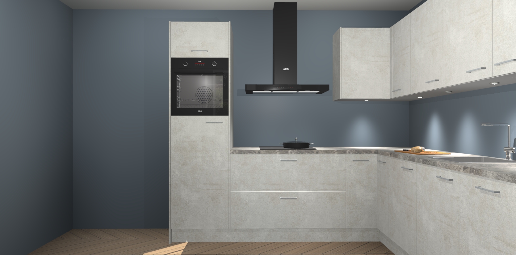 De Beton Opal keuken Debar is uitgerust met vijf inbouwapparaten die elke kooktaak handig en efficiënt maken. Een oven, inductiekookplaat, afzuigkap, vaatwasser en koelkast zijn standaard, maar kunnen na bestelling eenvoudig worden geupgrade naar AEG. Profiteer vervolgens van de softclose deuren voor snelle toegang en geruisloze toegang.
