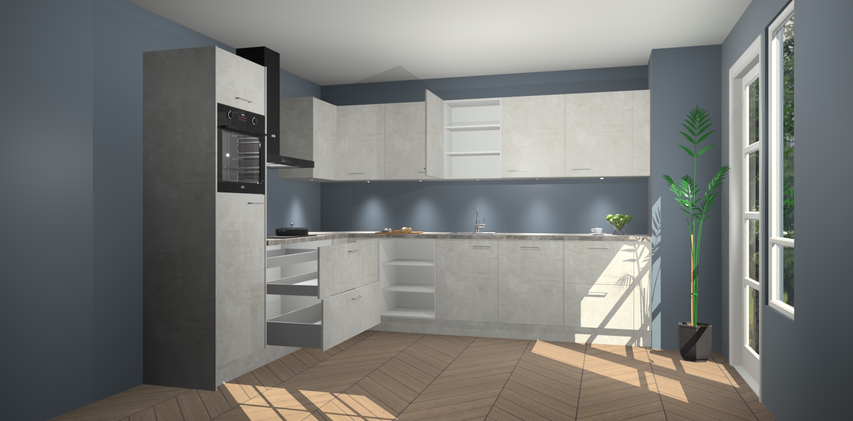 Als u op zoek bent naar de perfecte keuken om uw huis mee op te fleuren, zoek dan niet verder dan de Beton Opal keuken Debar. Deze prachtige hoekkeuken straalt warmte en luxe uit met een modern maar geraffineerd design. Maak u nooit meer zorgen of u wel genoeg opbergruimte heeft; dit meubel biedt voldoende opbergruimte om al uw keukenbenodigdheden binnen handbereik te houden.