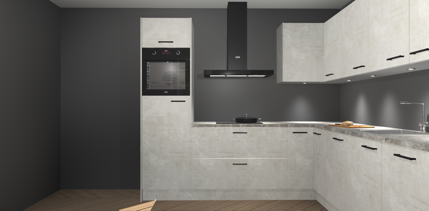 De Beton Opal keuken Debar is uitgerust met vijf inbouwapparaten die elke kooktaak handig en efficiënt maken. Een oven, inductiekookplaat, afzuigkap, vaatwasser en koelkast zijn standaard, maar kunnen na bestelling eenvoudig worden geupgrade naar AEG. Profiteer vervolgens van de softclose deuren voor snelle toegang en geruisloze toegang.